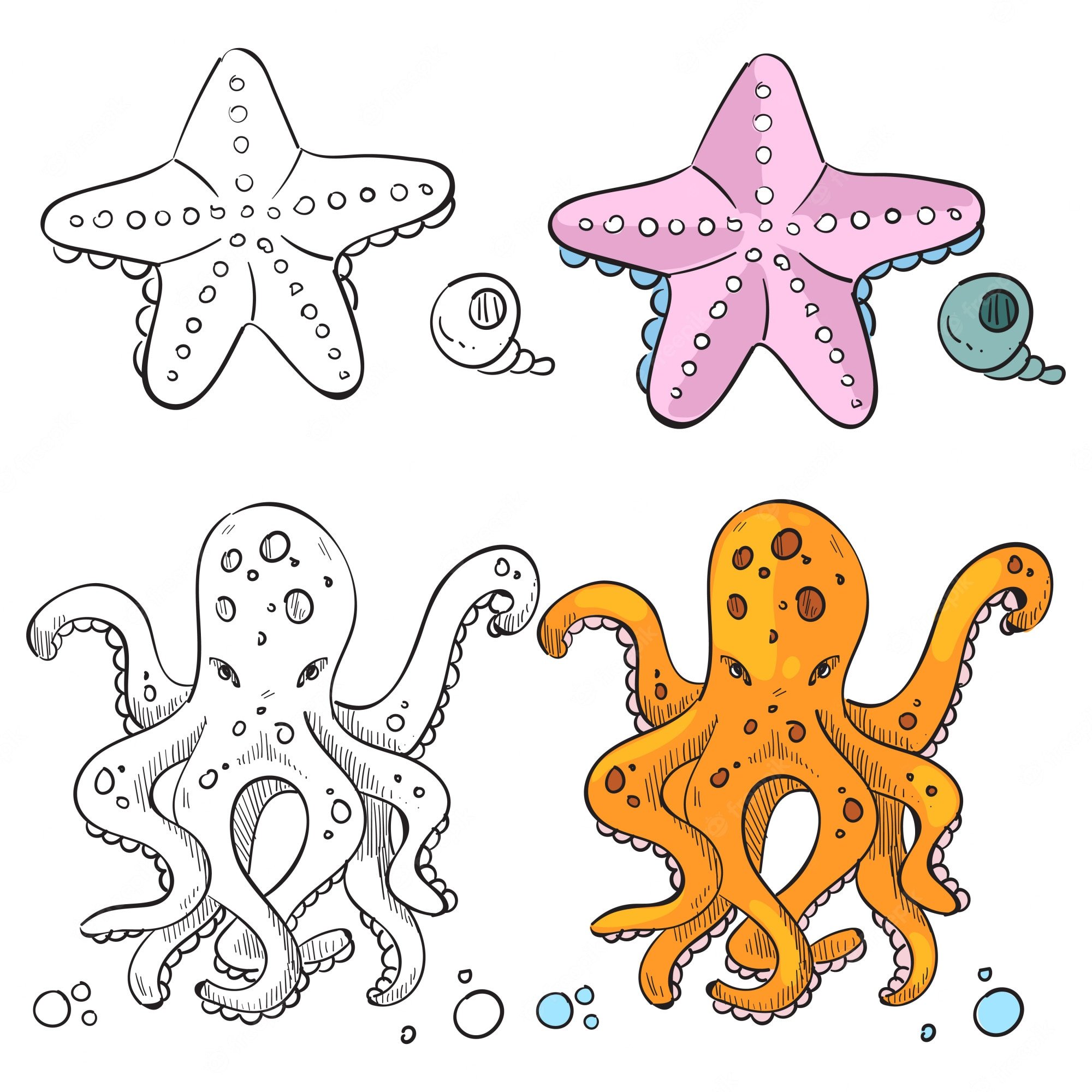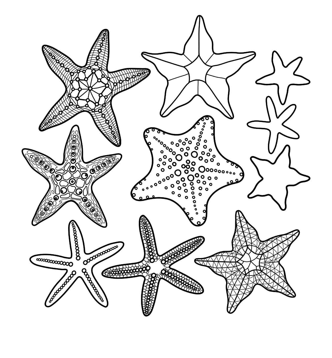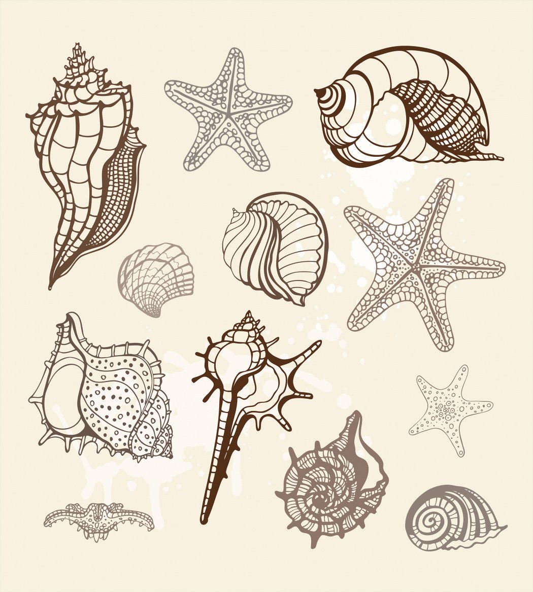 Раскраски ракушек и морских звезд