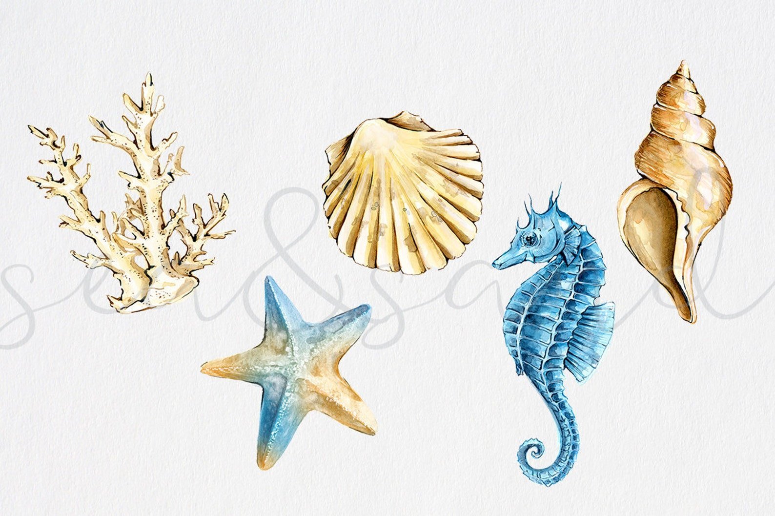 Ракушки трафарет Акварельные