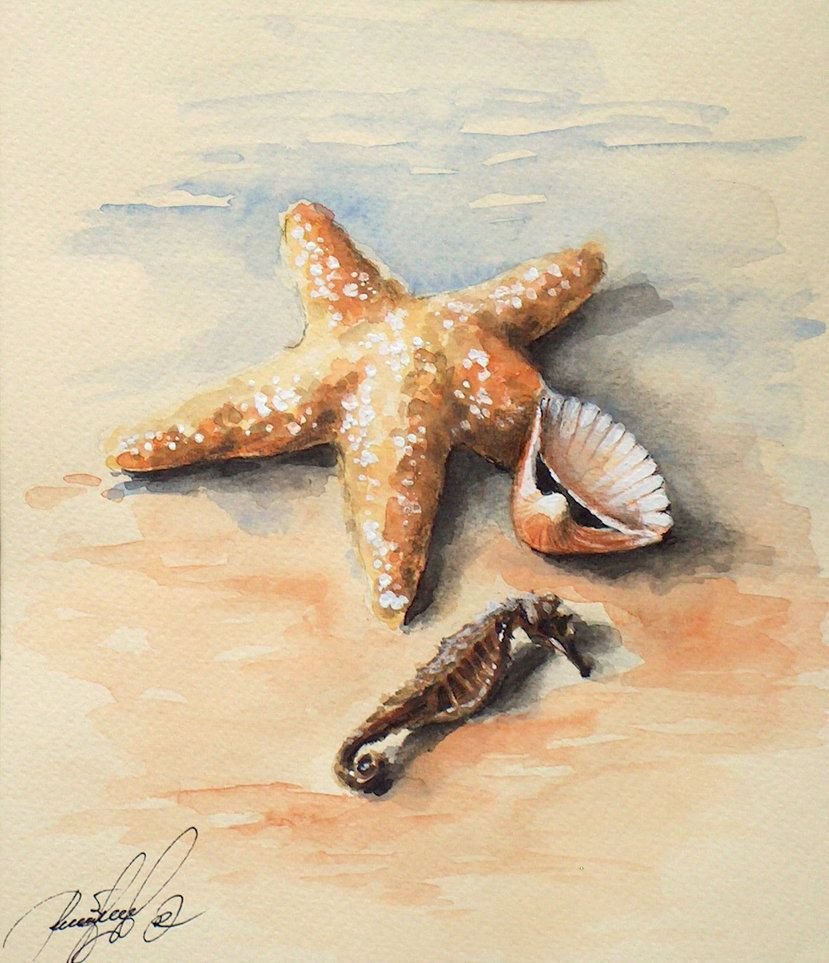 Морская звезда акварель