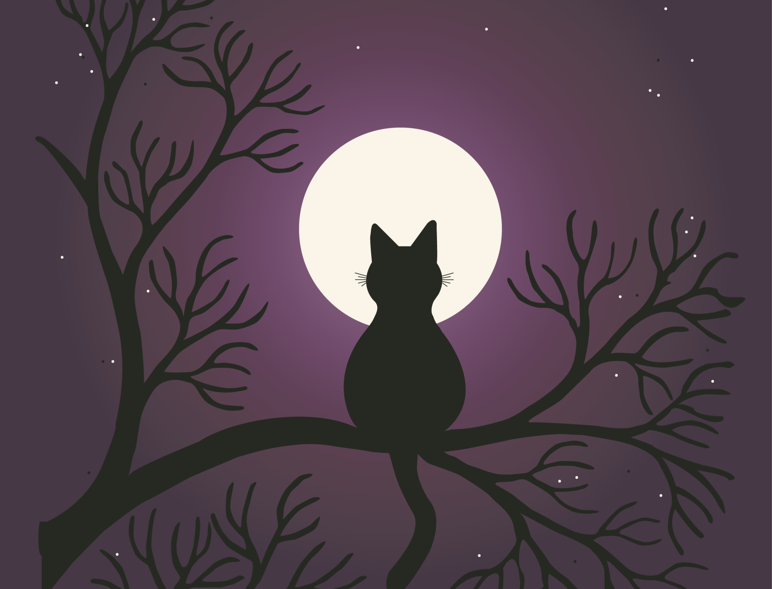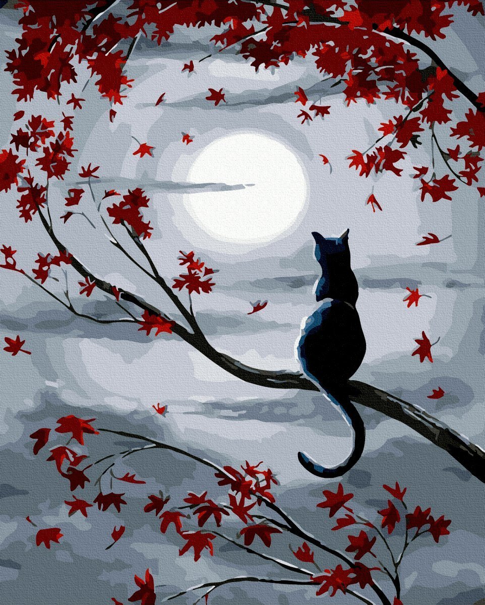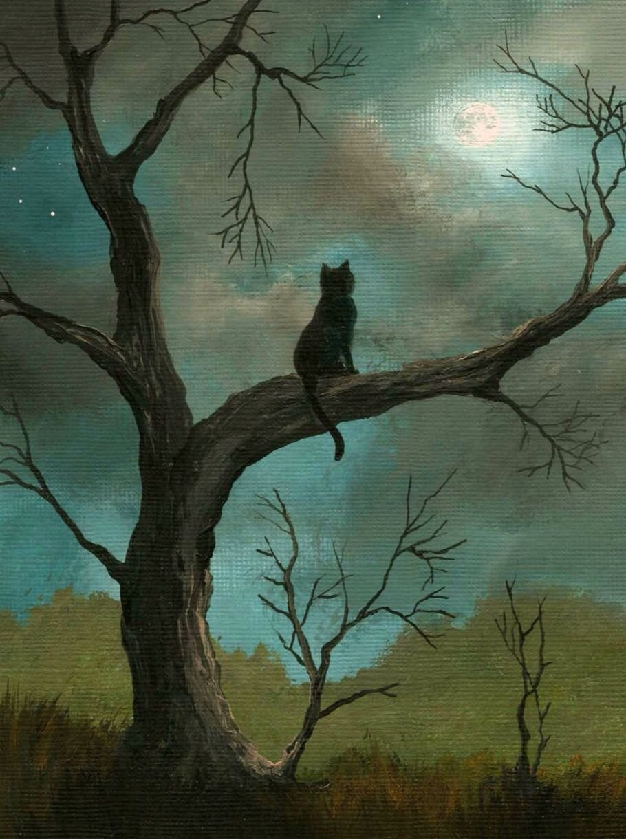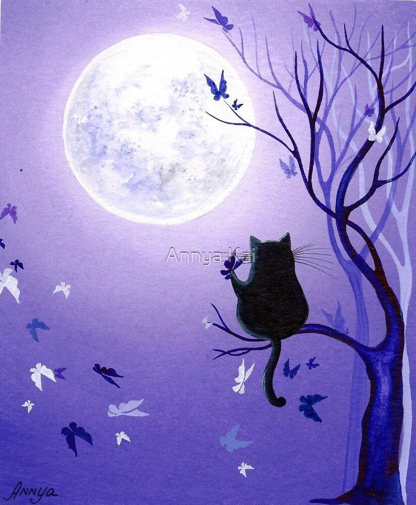 Кот на дереве и Луна