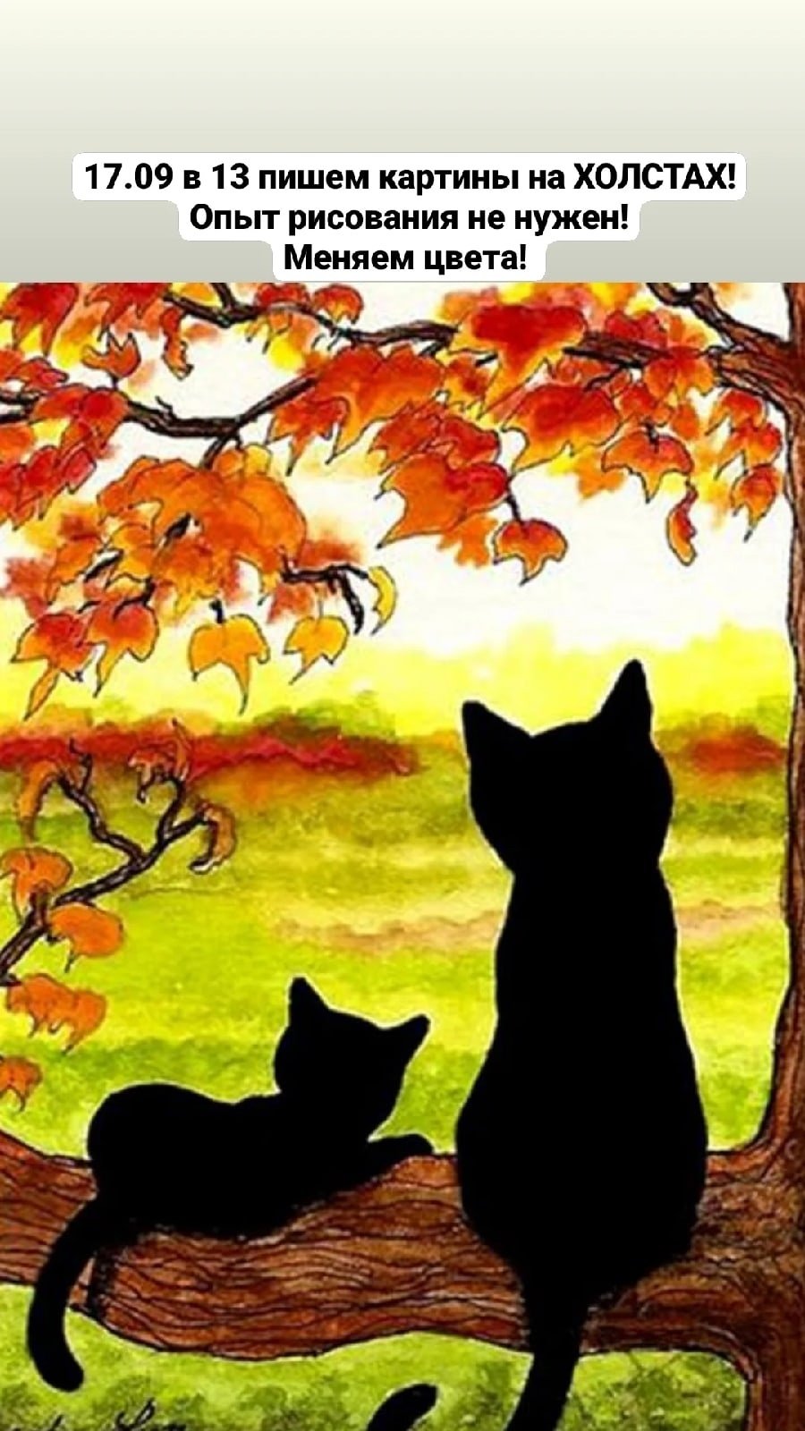 Осенний пейзаж и черная кошка