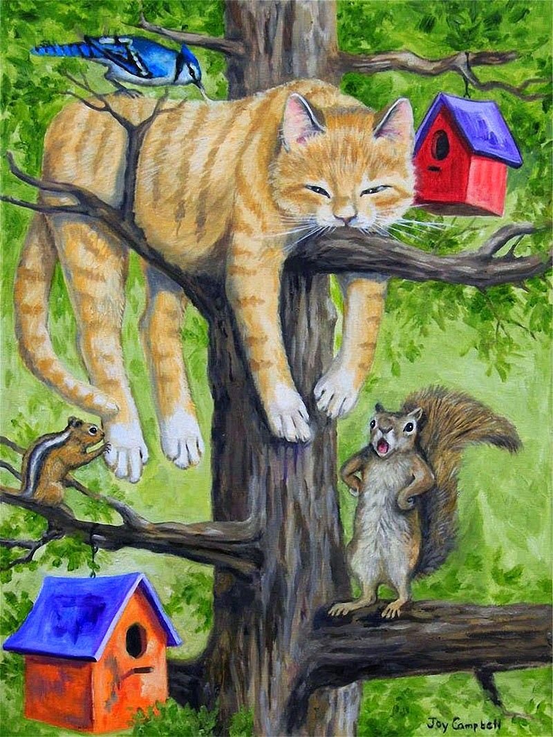 Кошки на дереве живопись