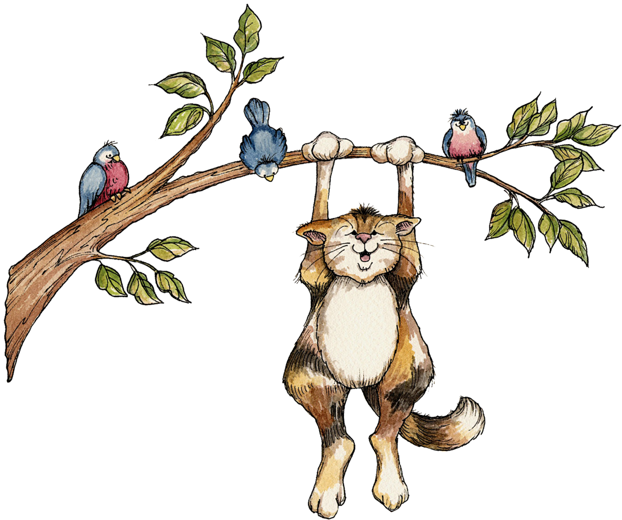 Кот на ветке рисунок