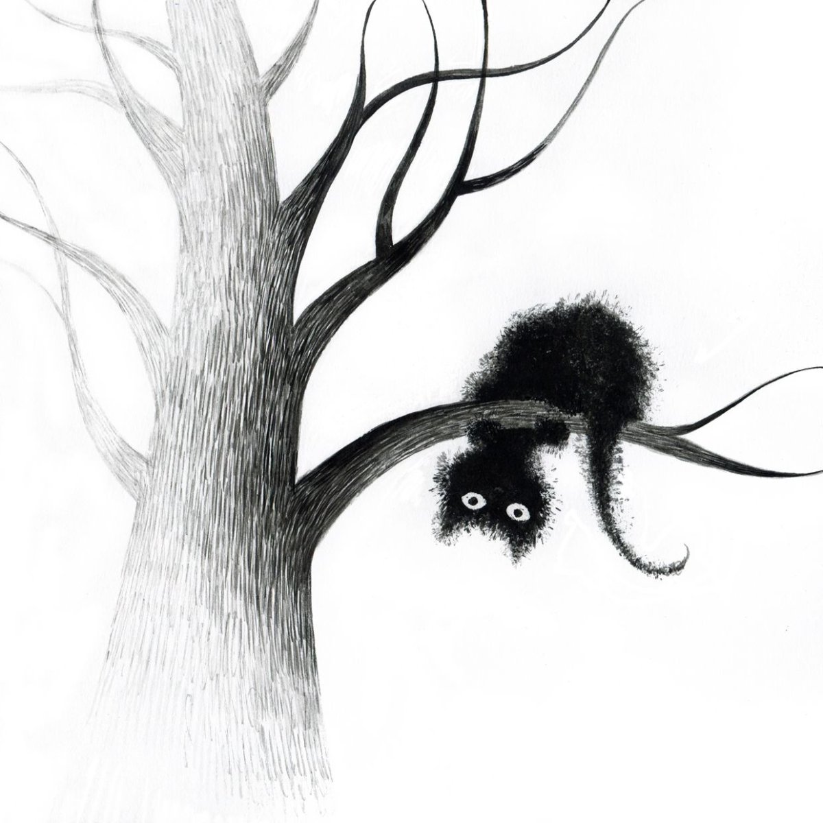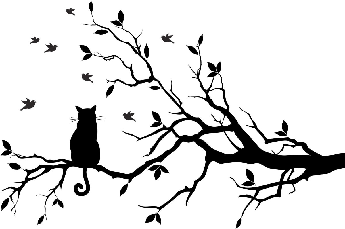 Кошка на дереве рисунок