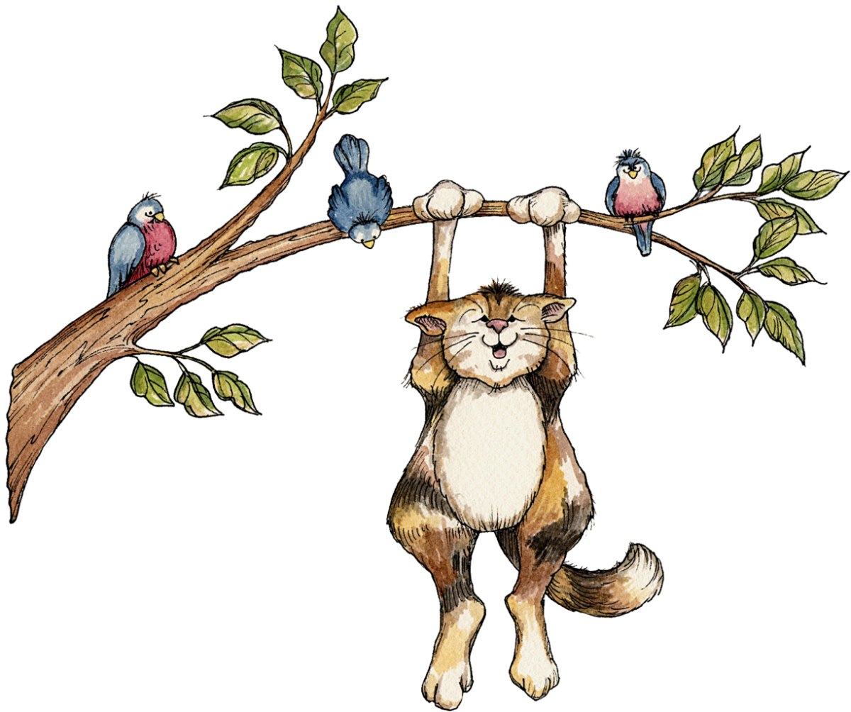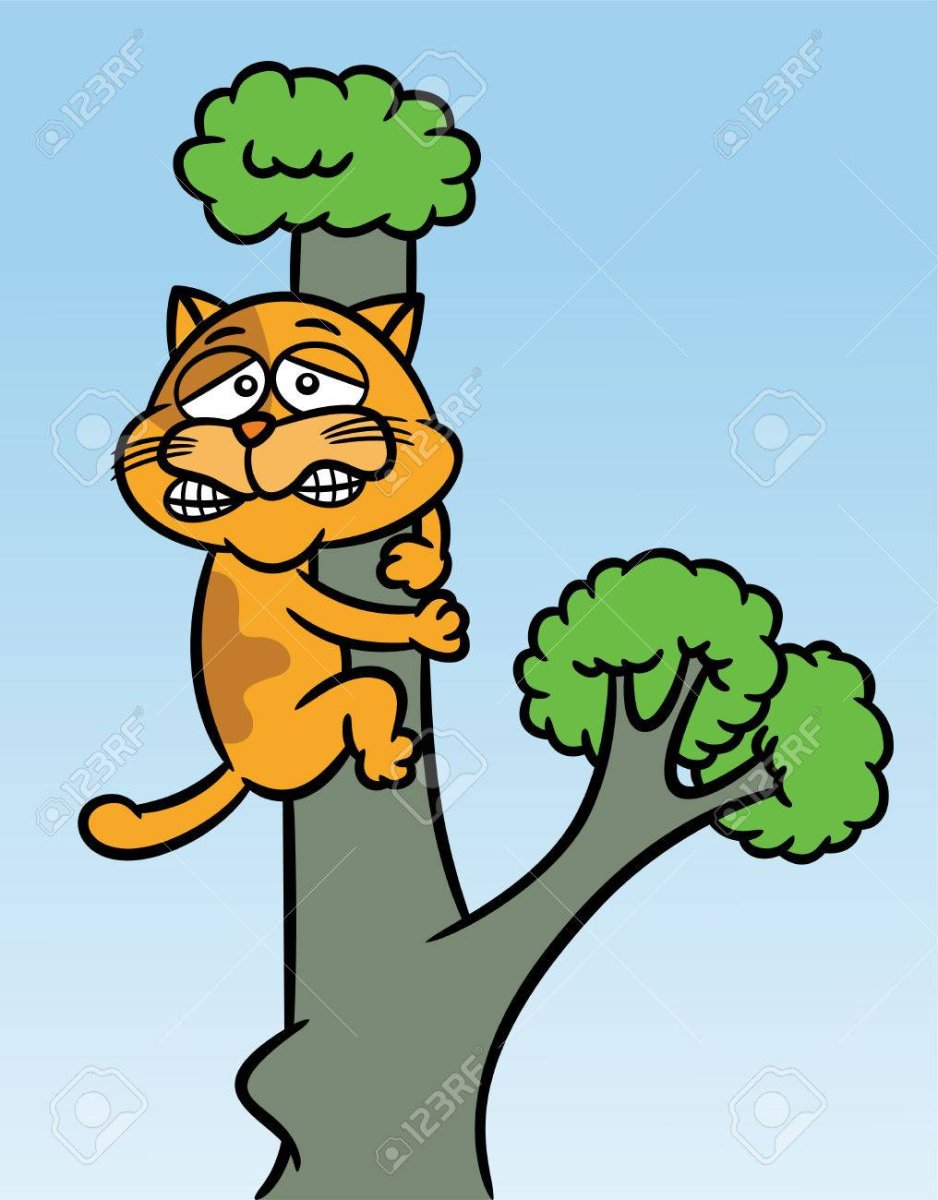Кот на дереве мультяшный