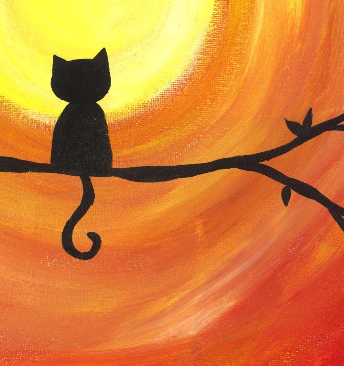 Кот на закате гуашью