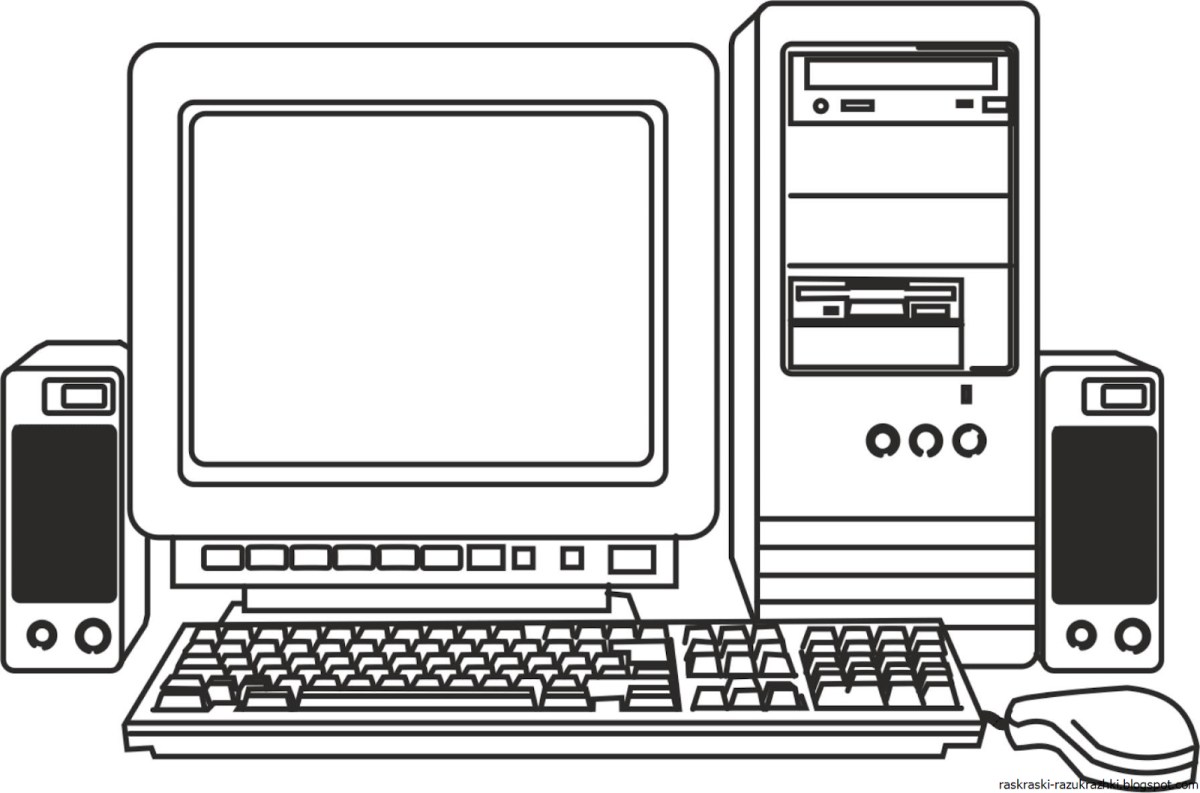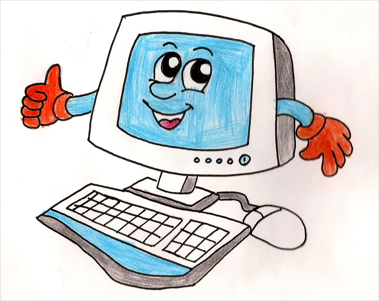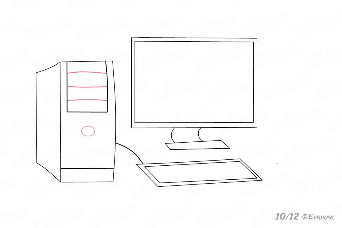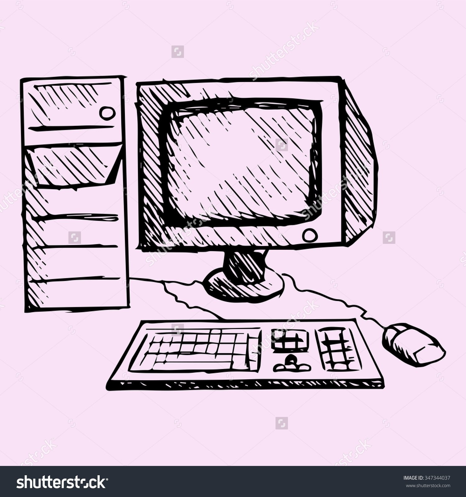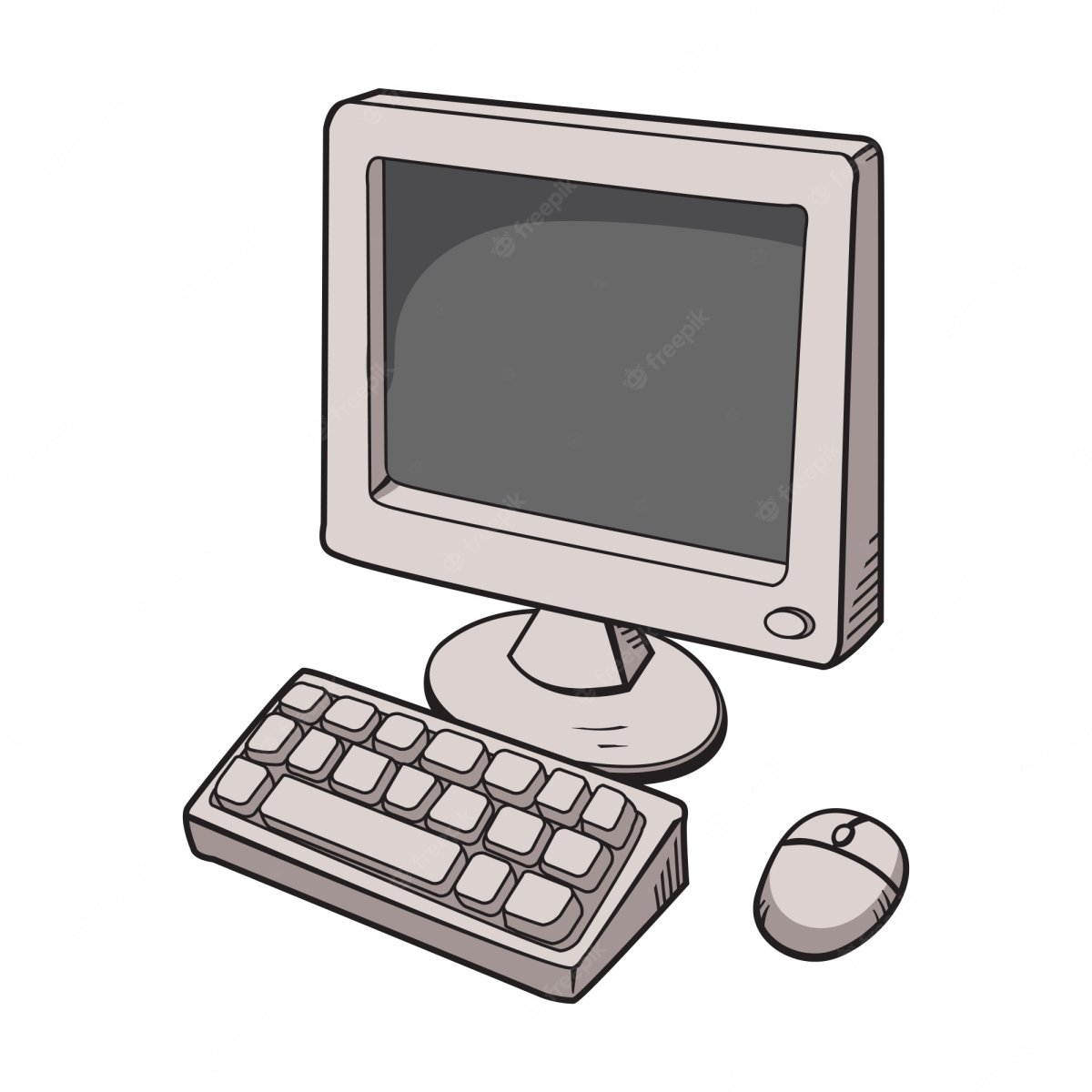 Компьютер с монитором клавиатурой и мышкой рисованный