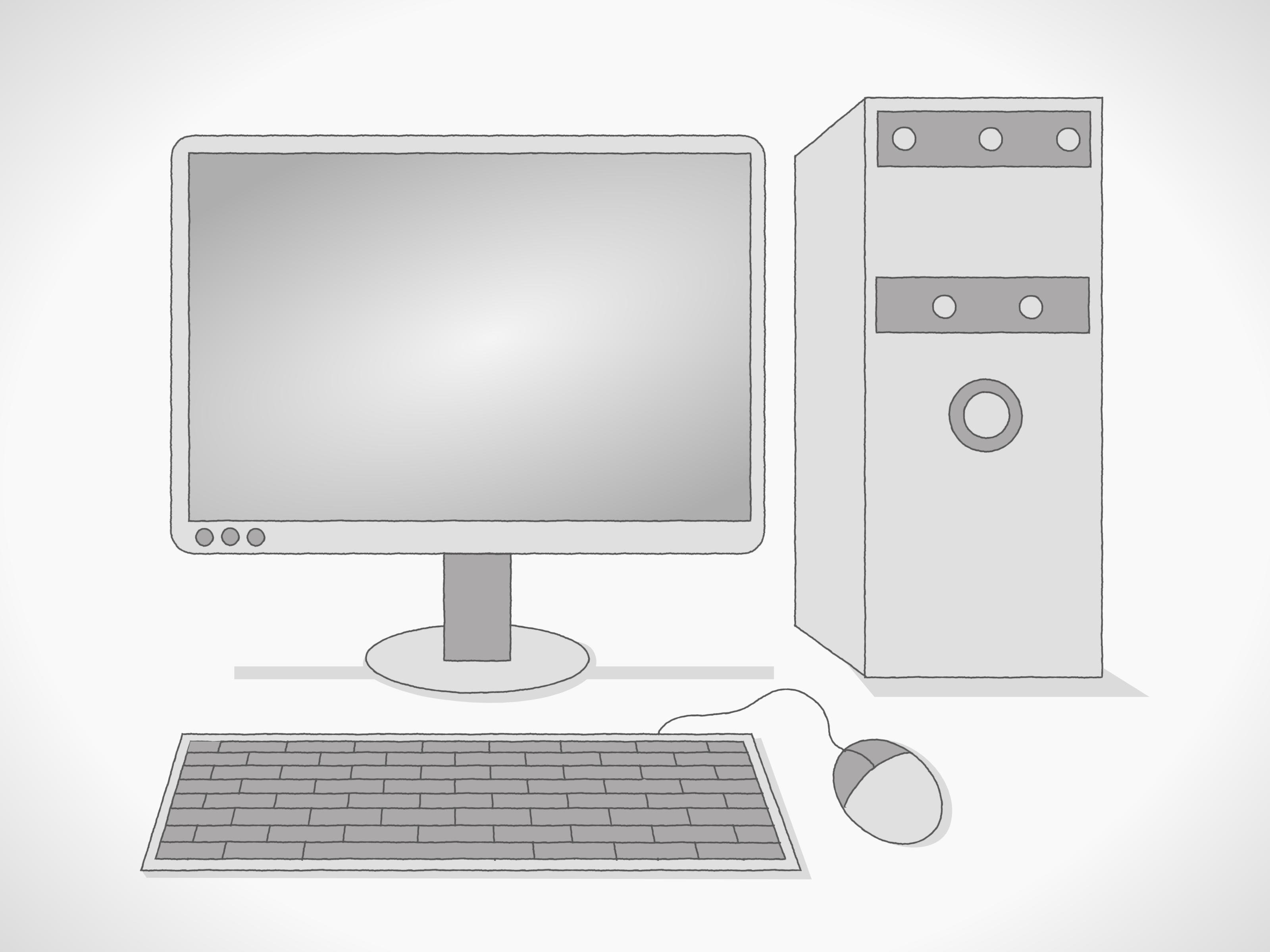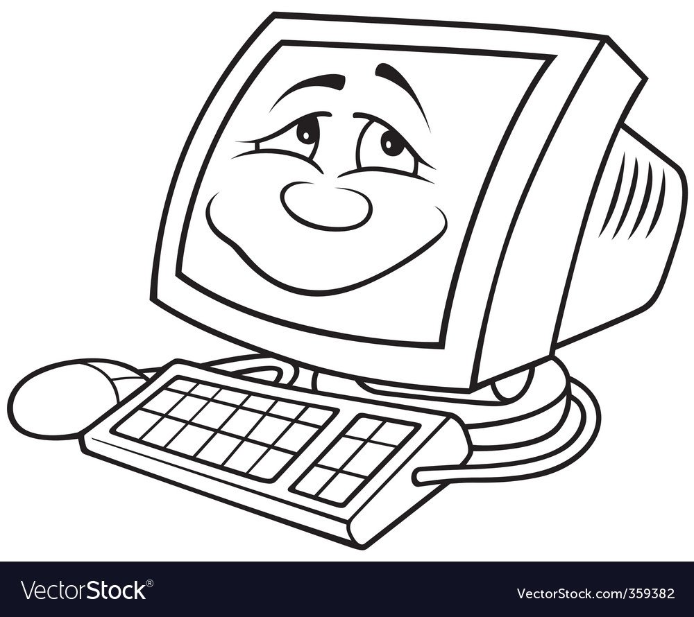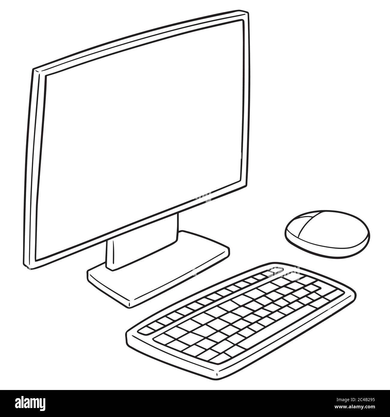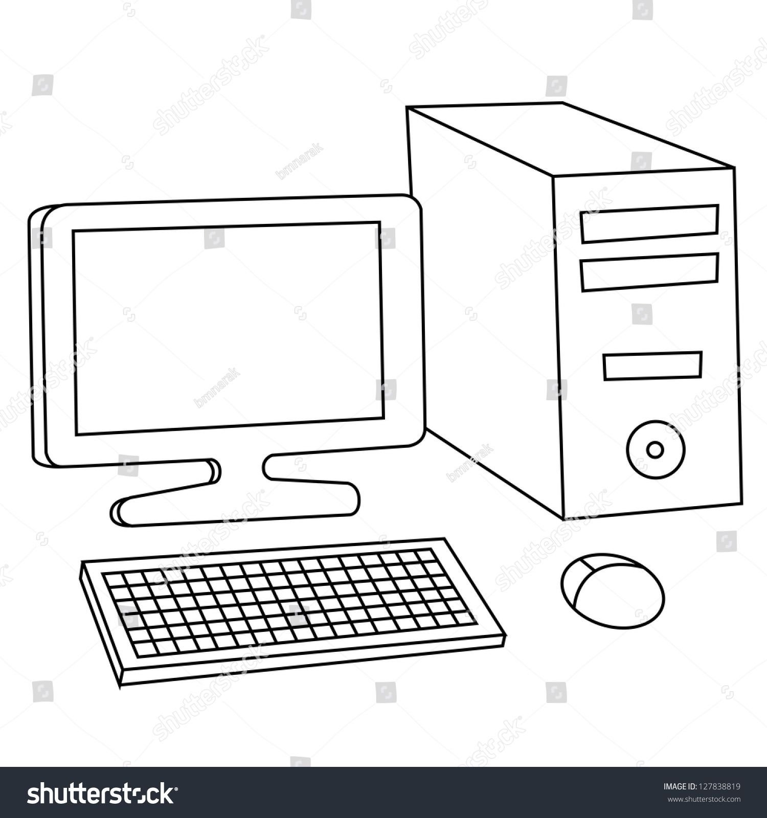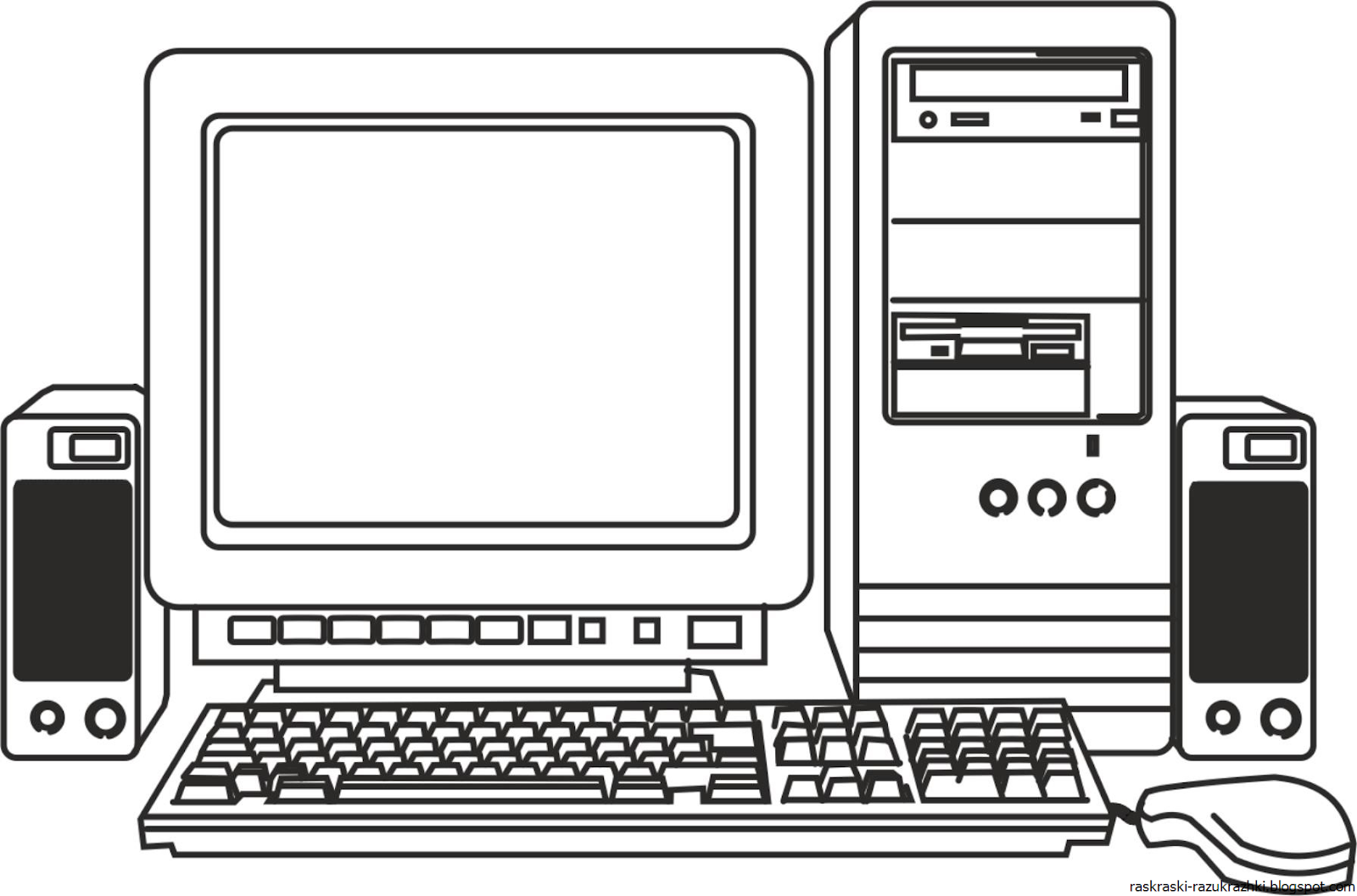 Компьютер с монитором клавиатурой и мышкой рисованный