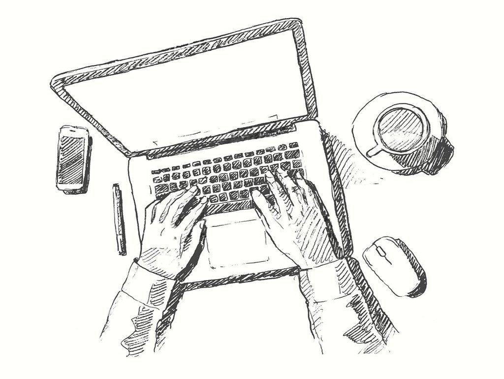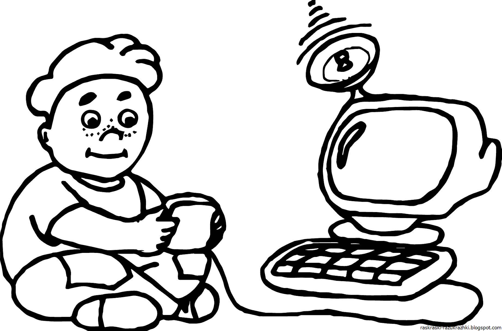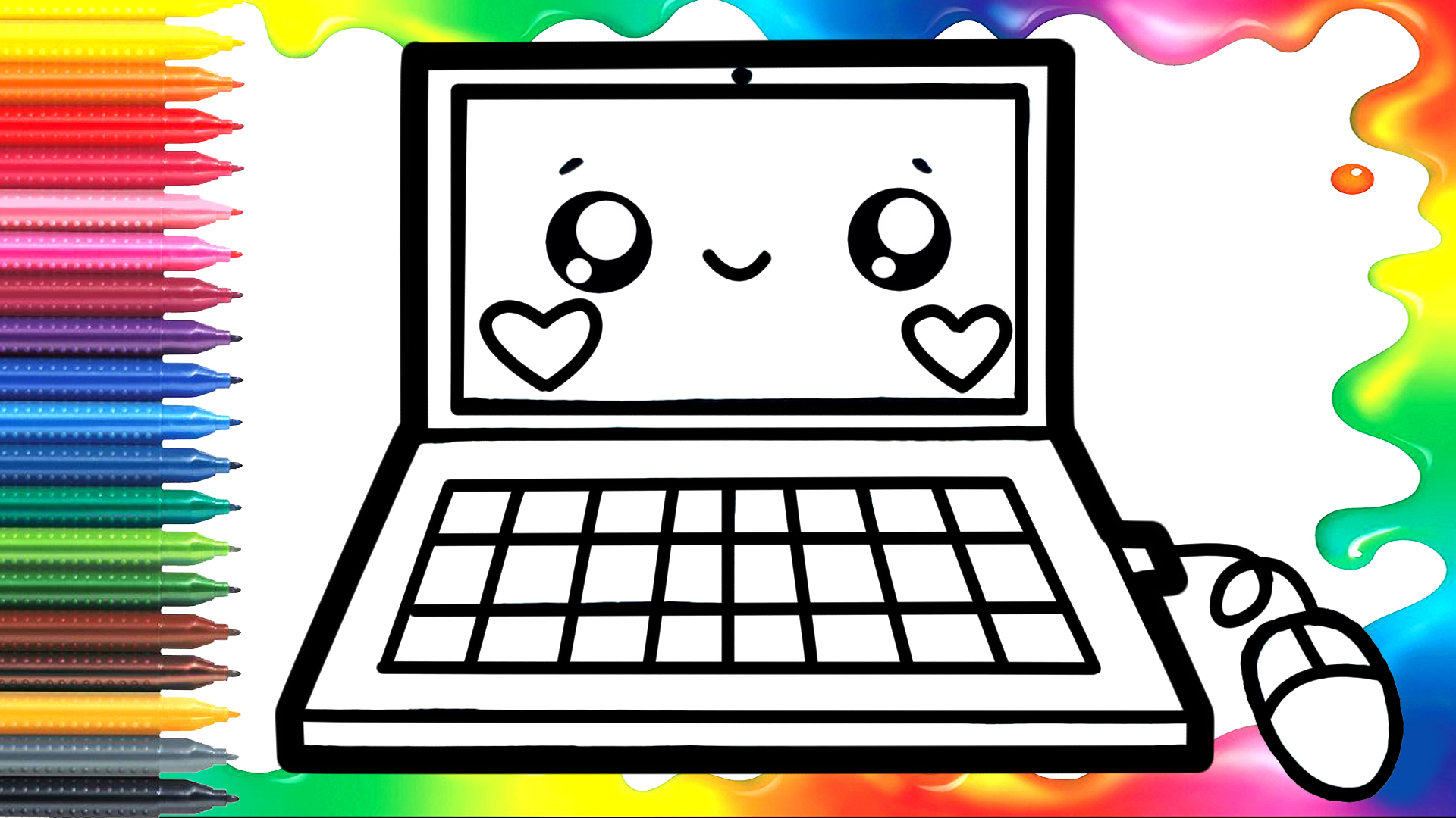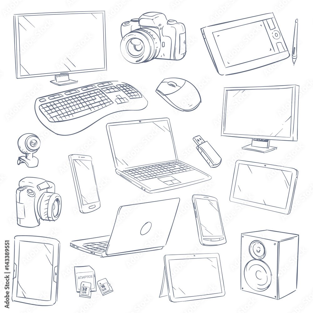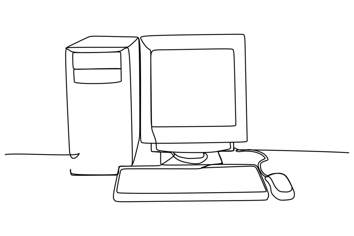 Компьютер с монитором клавиатурой и мышкой рисованный