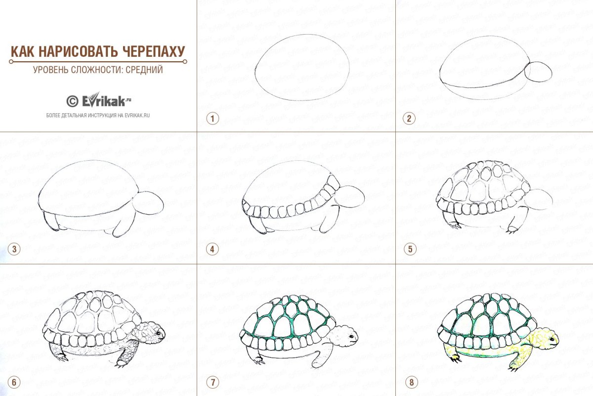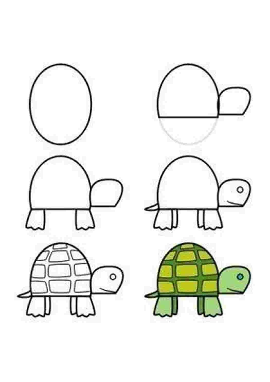 Поэтапное рисование черепахи для дошкольников