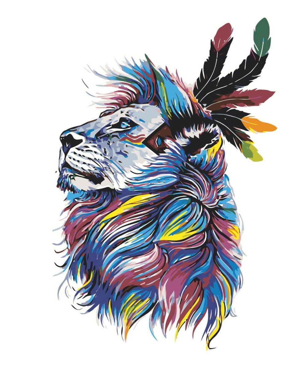 Цветной картина по номерам "Лев-индеец" 30х40 см