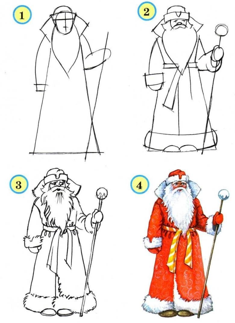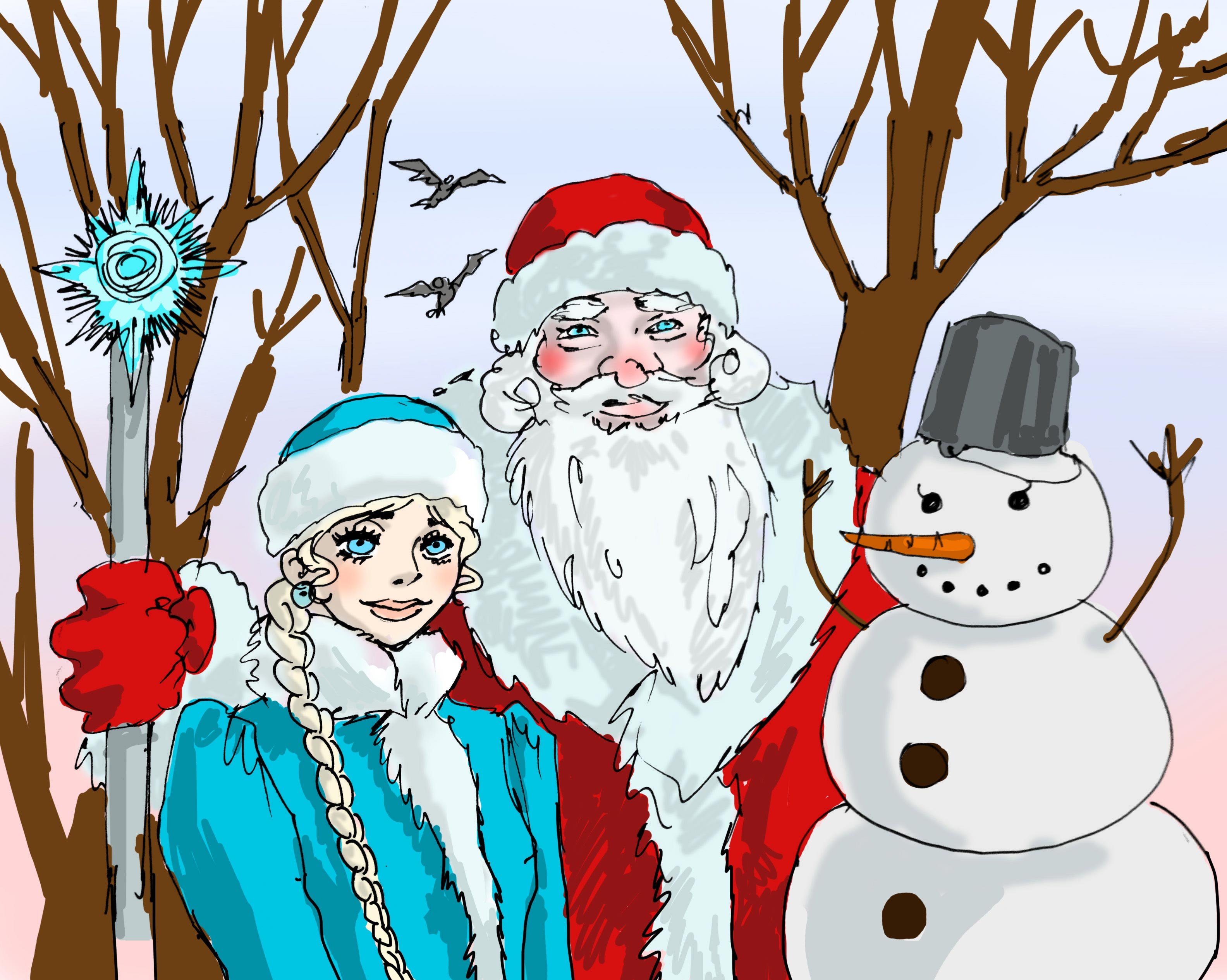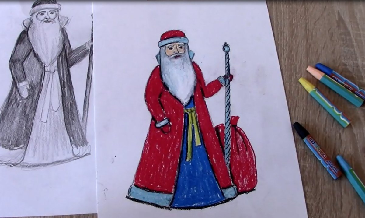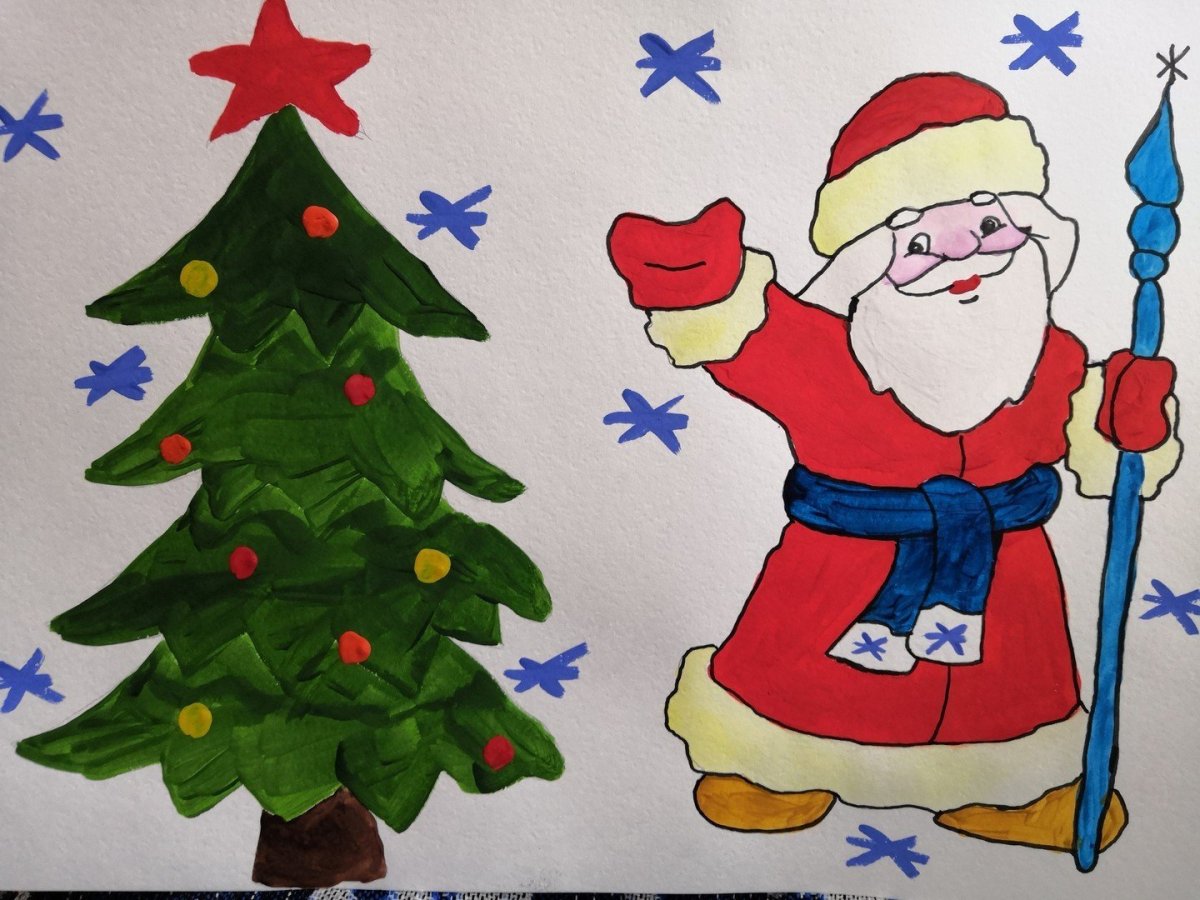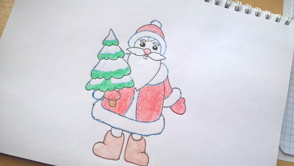 Рисование новогодней елки - Деда Мороза и Снегурочки