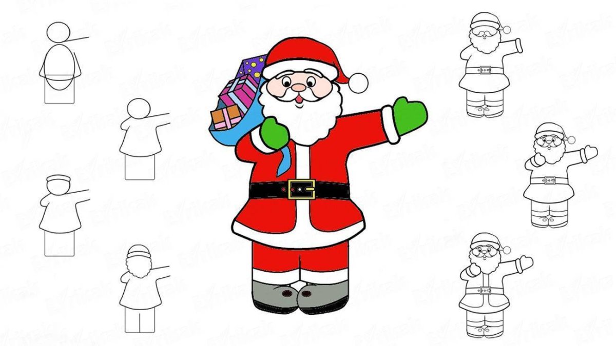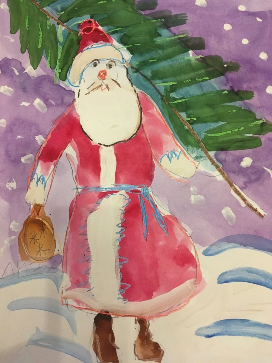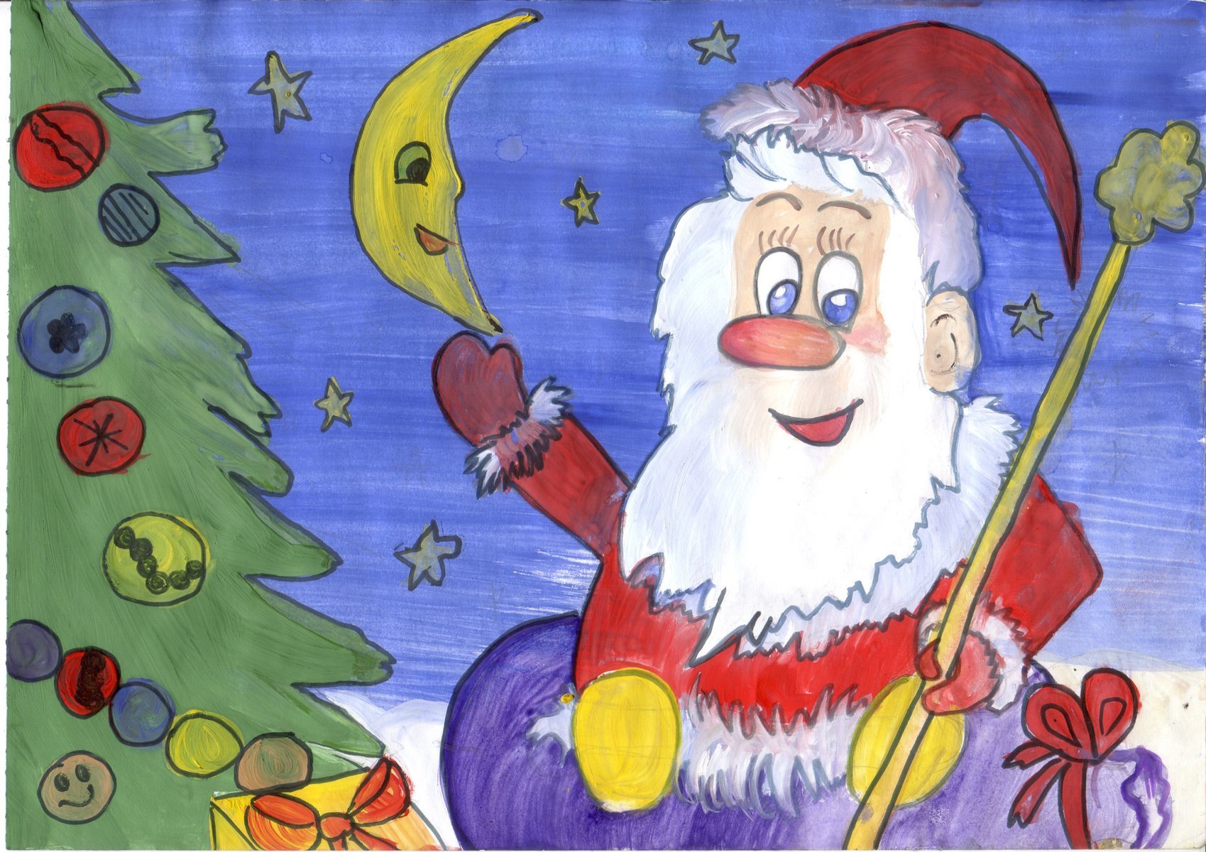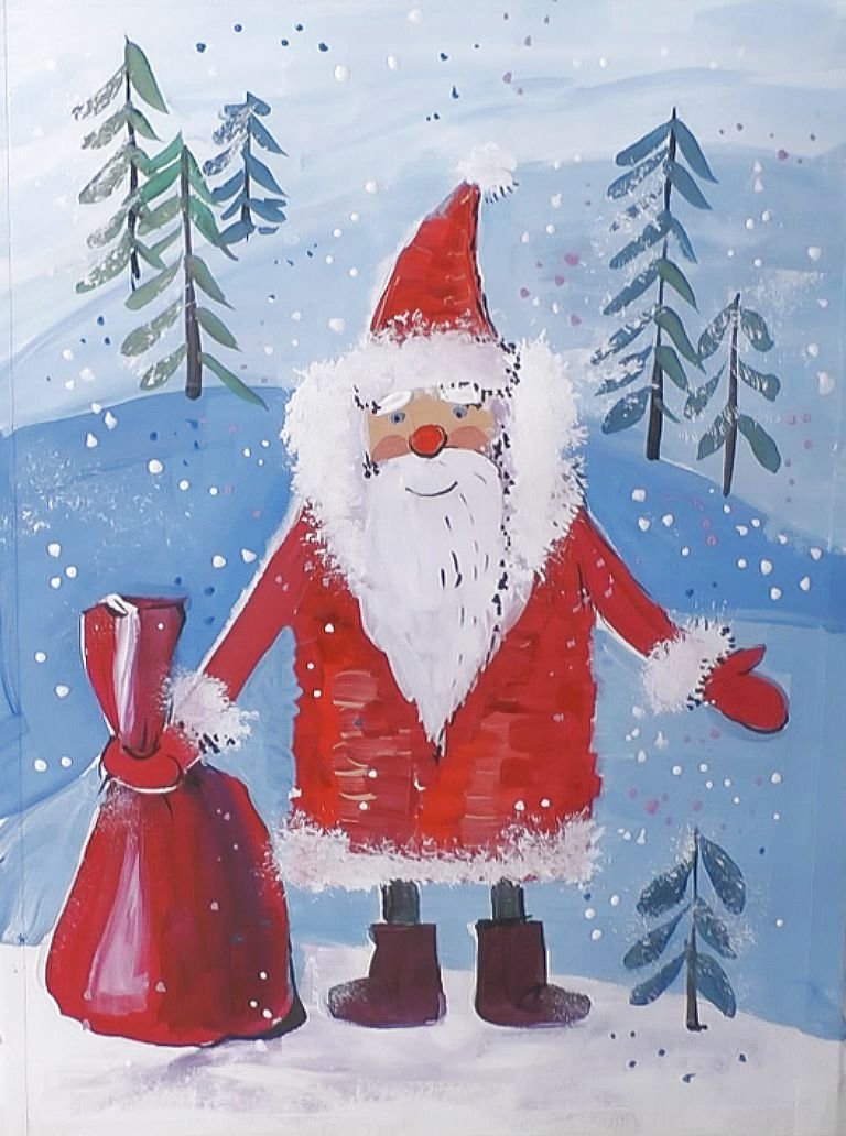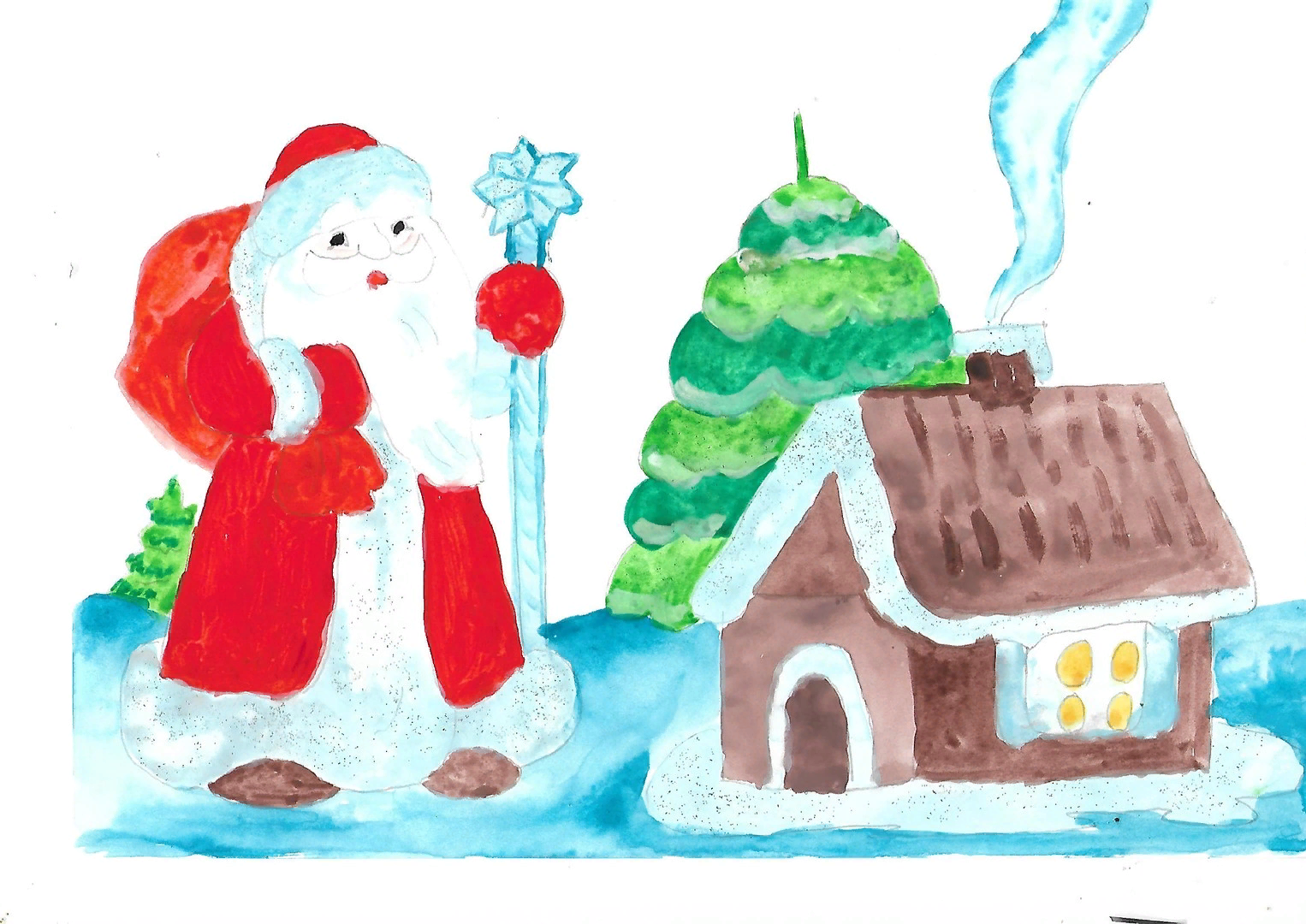 Рисование новогодней елки - Деда Мороза и Снегурочки