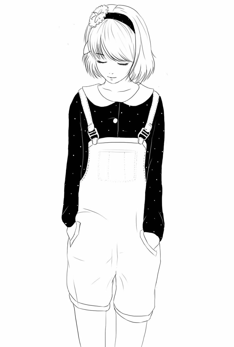 Эскиз девушки в комбинезоне