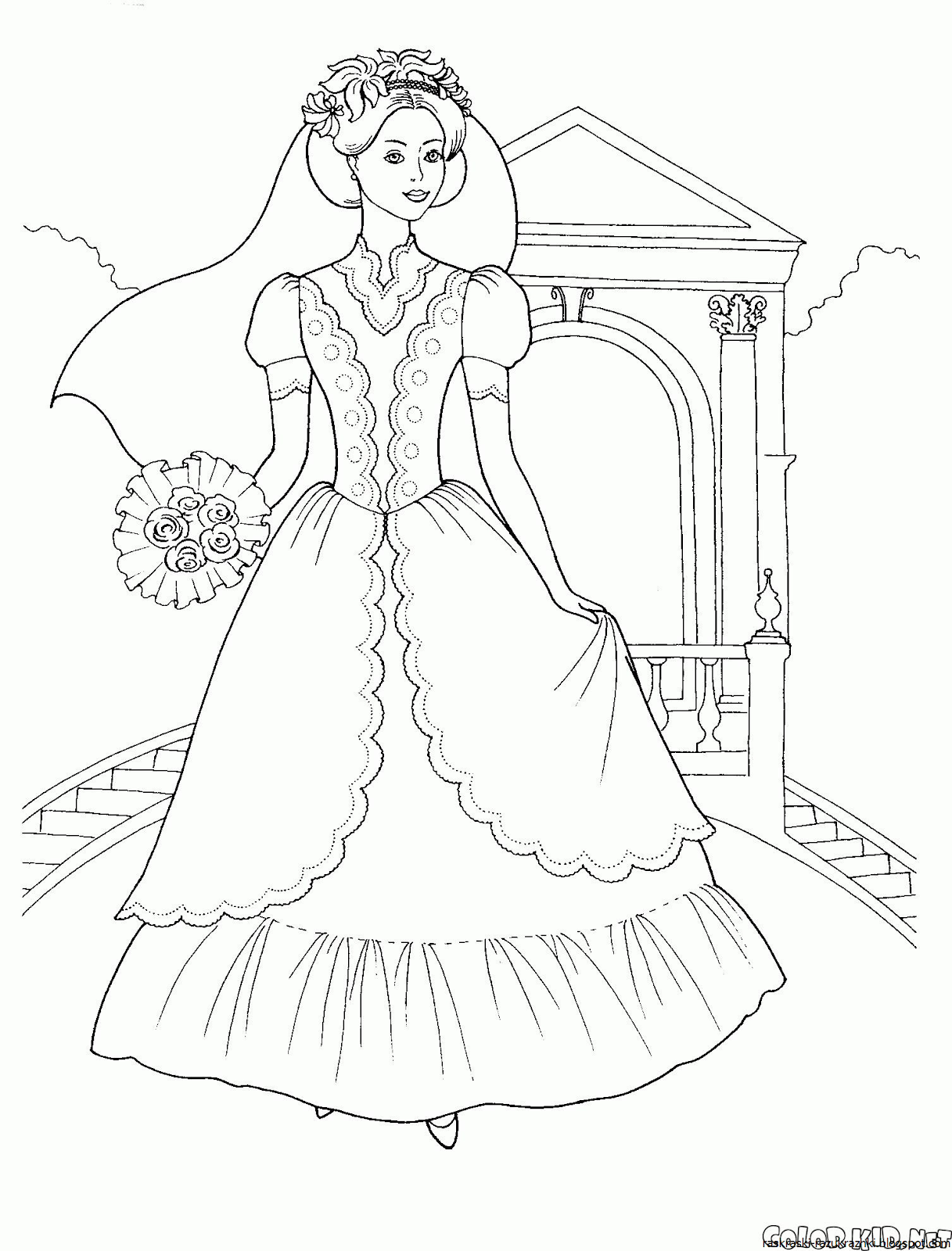 Платье принцессы раскраска для детей