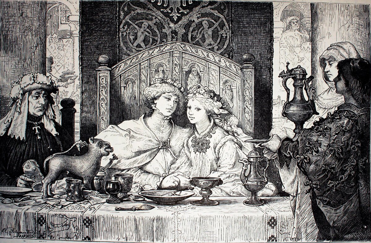 Средневековый пир гравюра