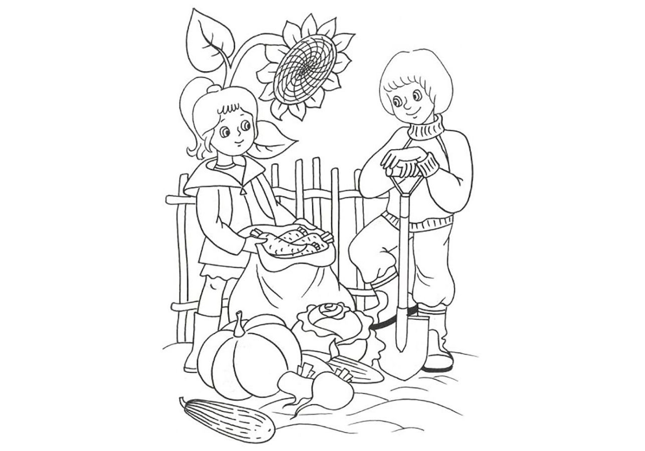 Раскраски сбор урожая осенью для детей
