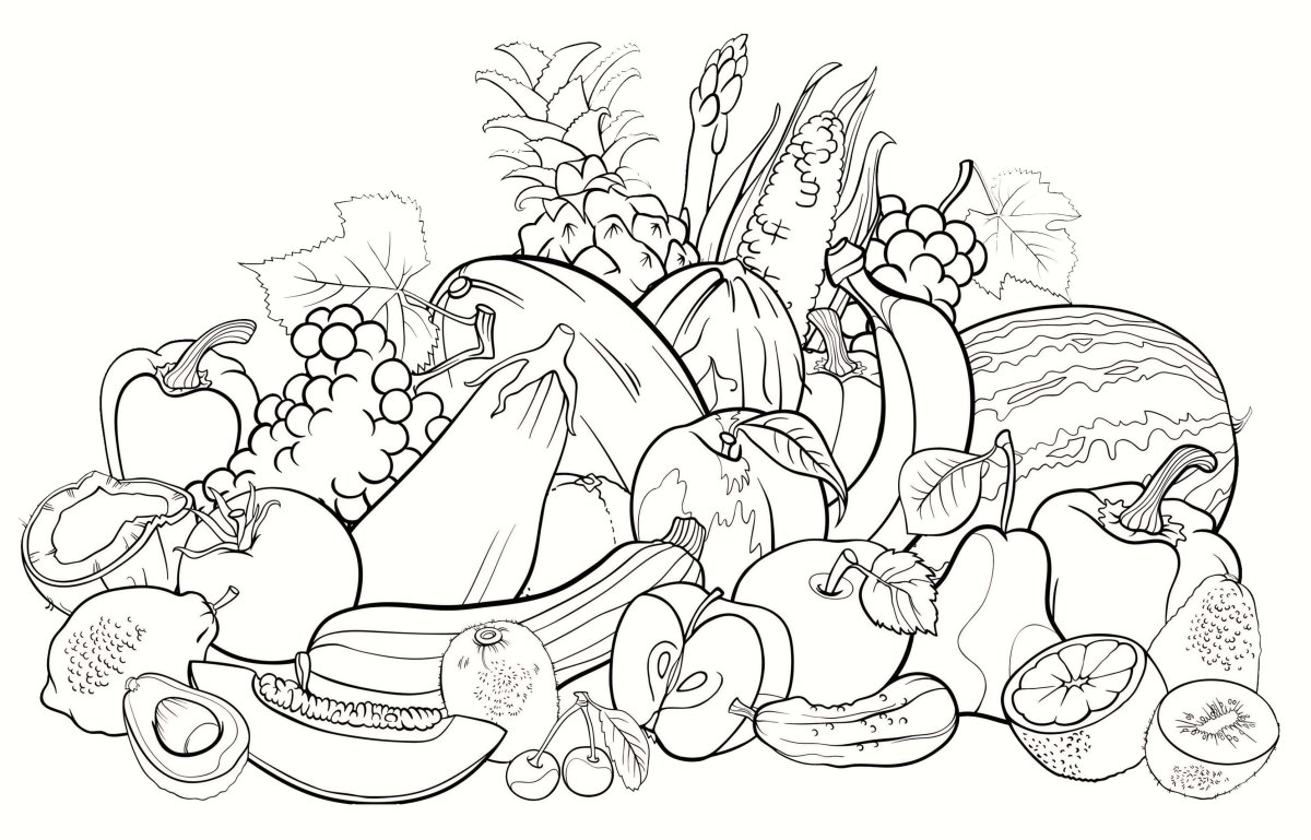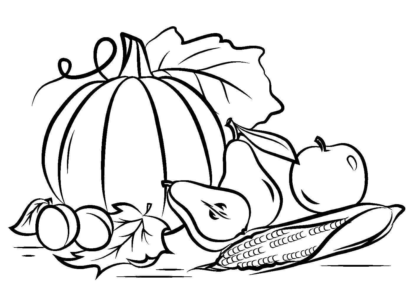 Осенние овощи и фрукты раскраска