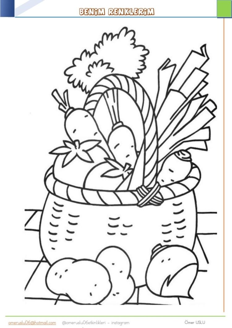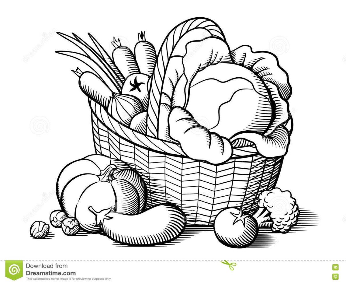 Корзина с овощами раскраска для детей