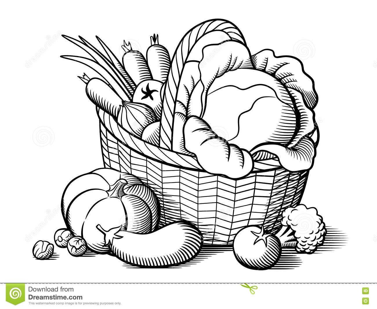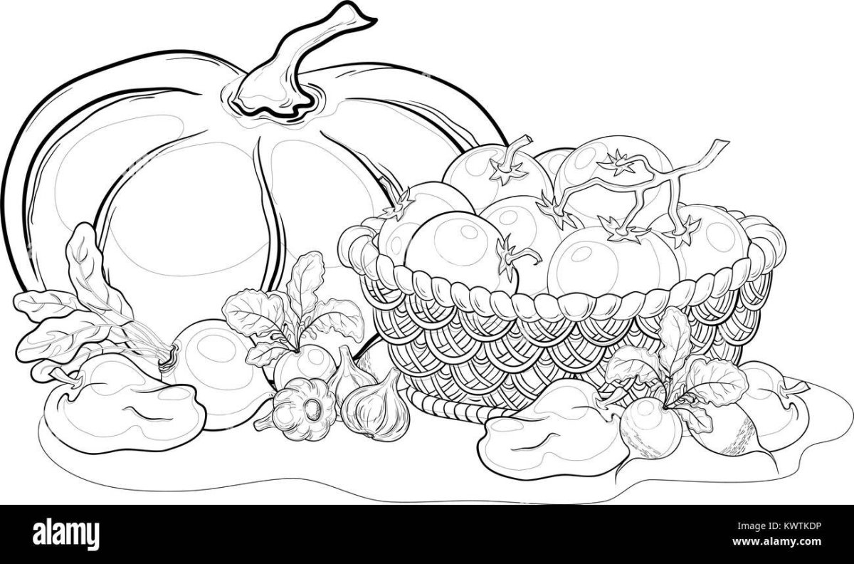 Корзинка с овощами раскраска