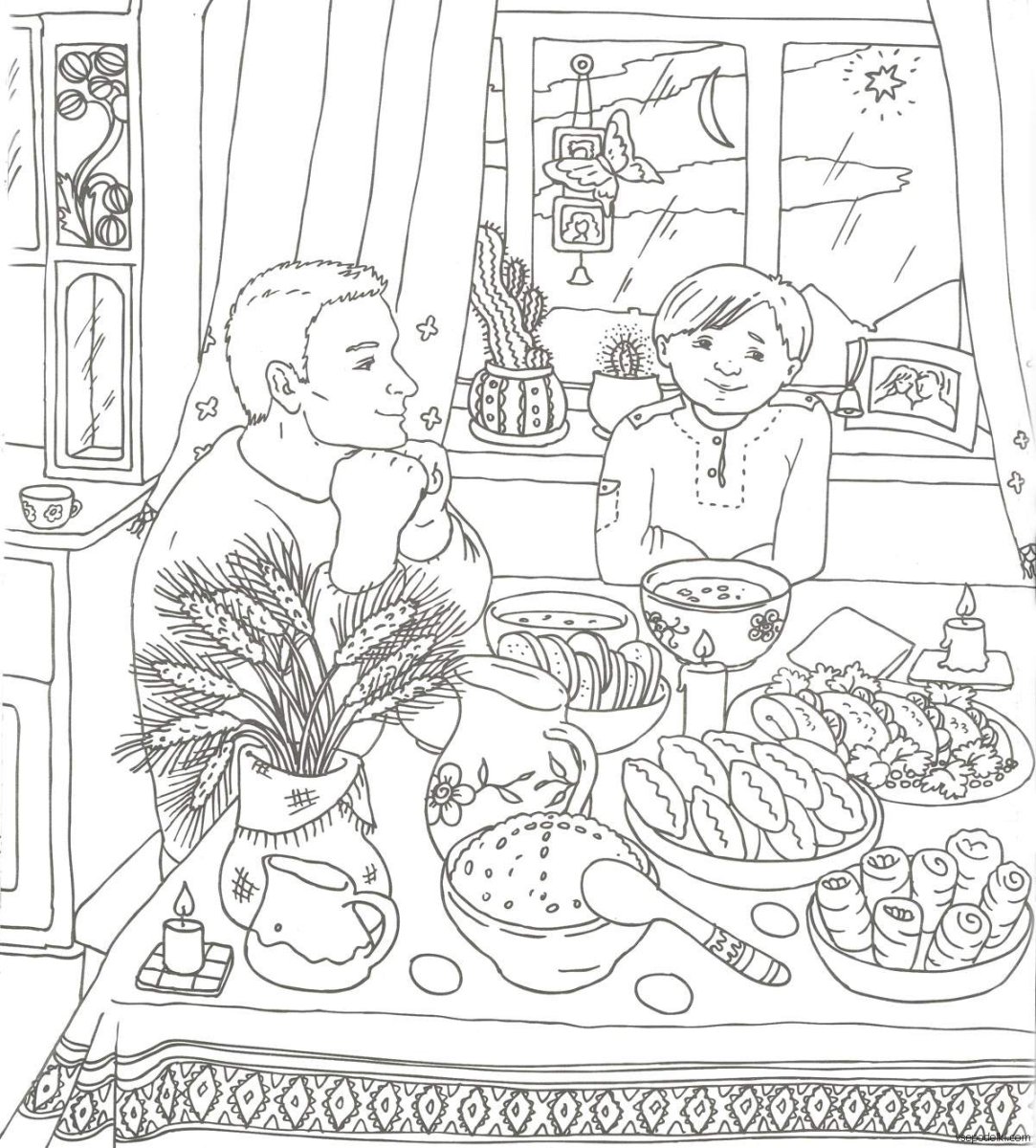 Раскраска праздничный новогодний стол
