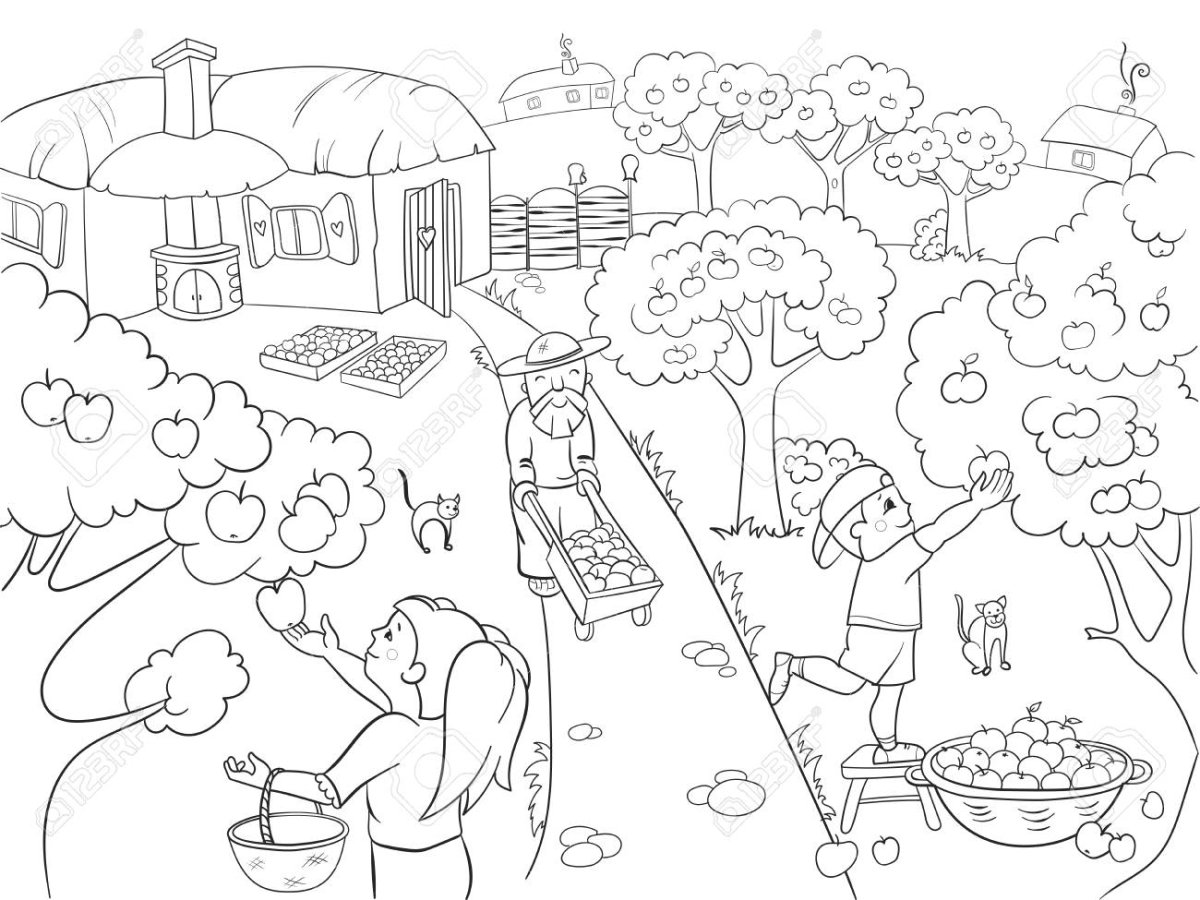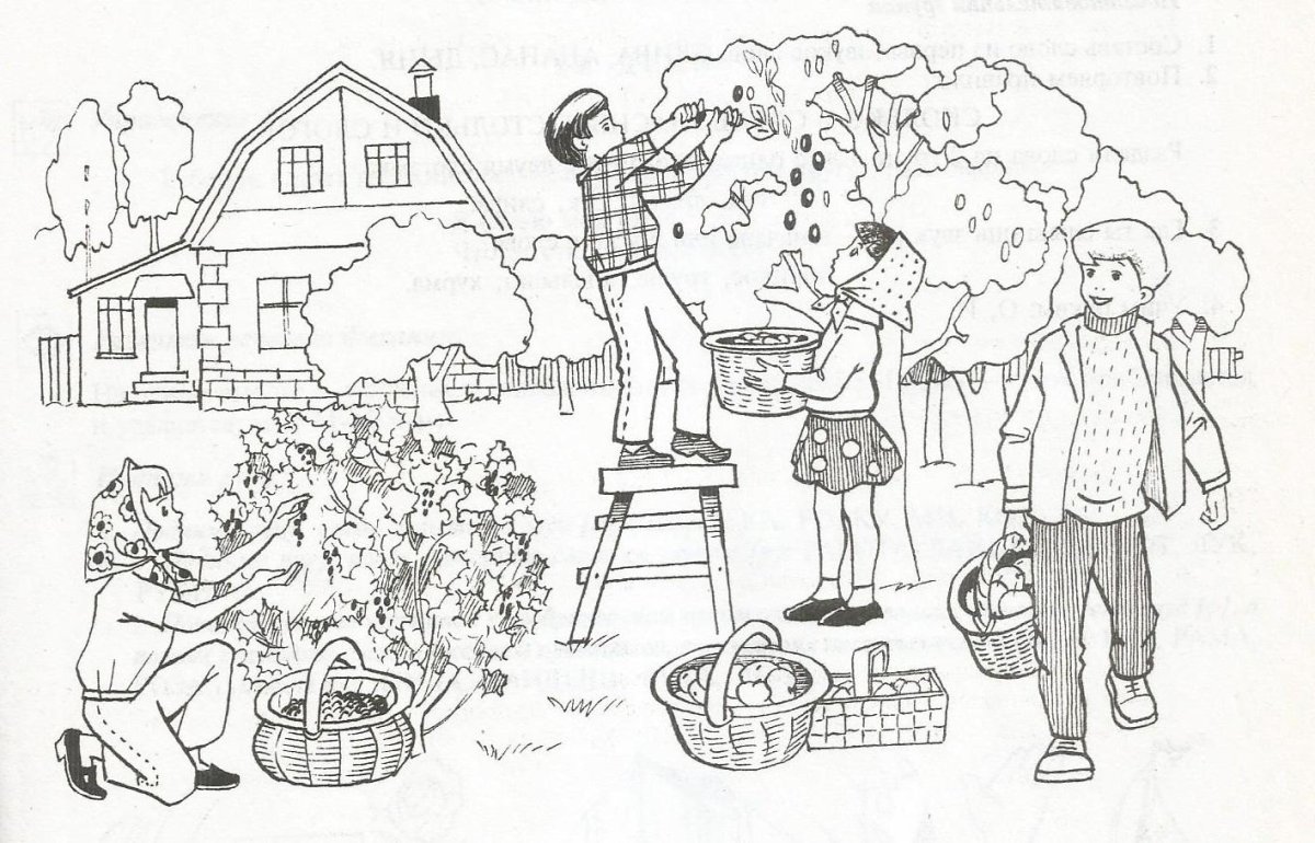 Раскраска сбор урожая в саду