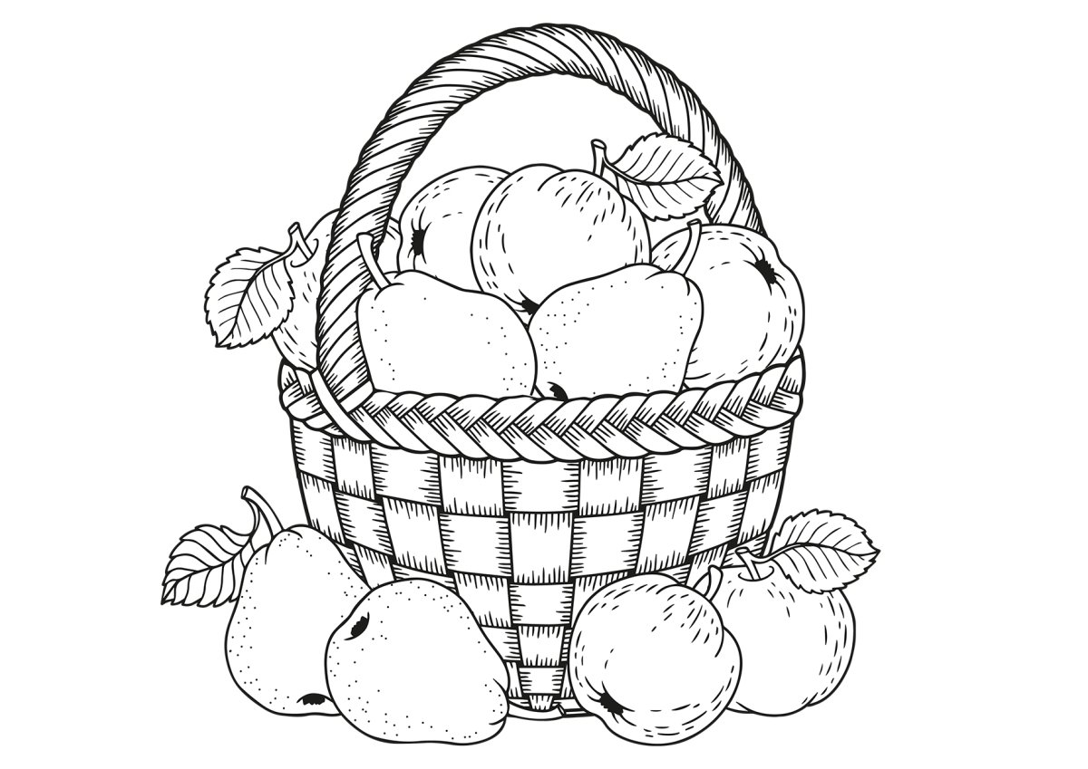 Корзина с фруктами раскраска