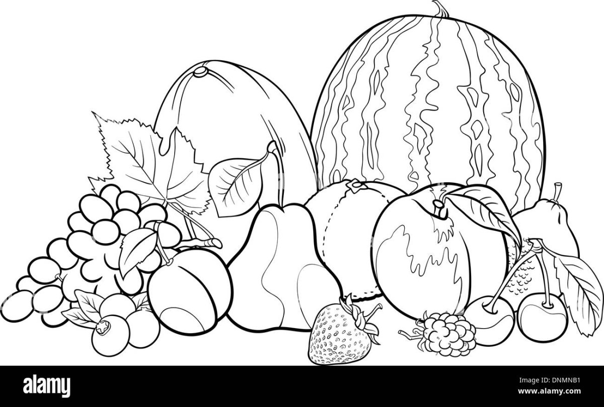Натюрморт с фруктами раскраска