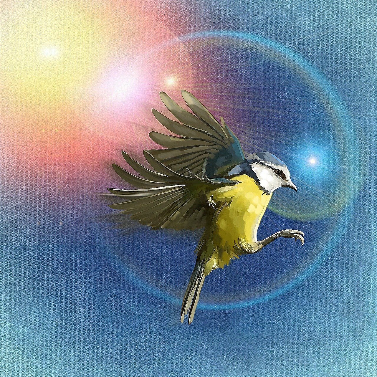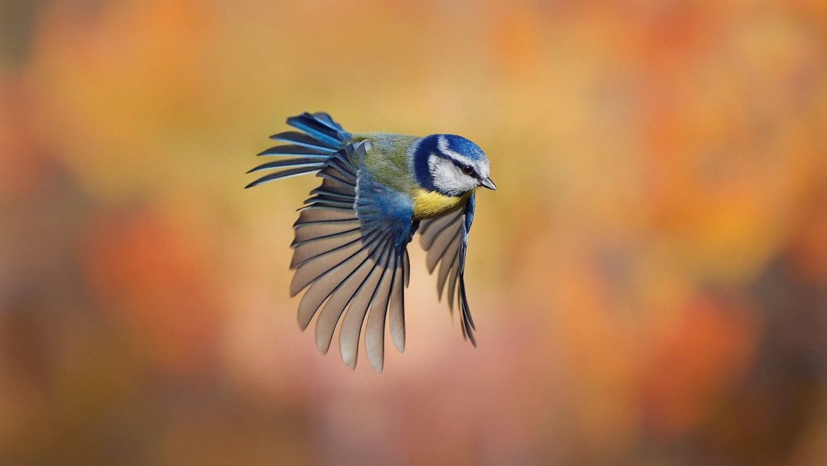 Синица лазоревка в полете