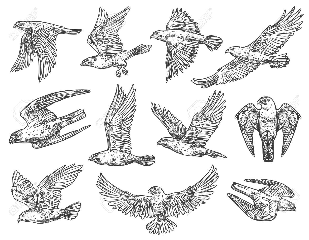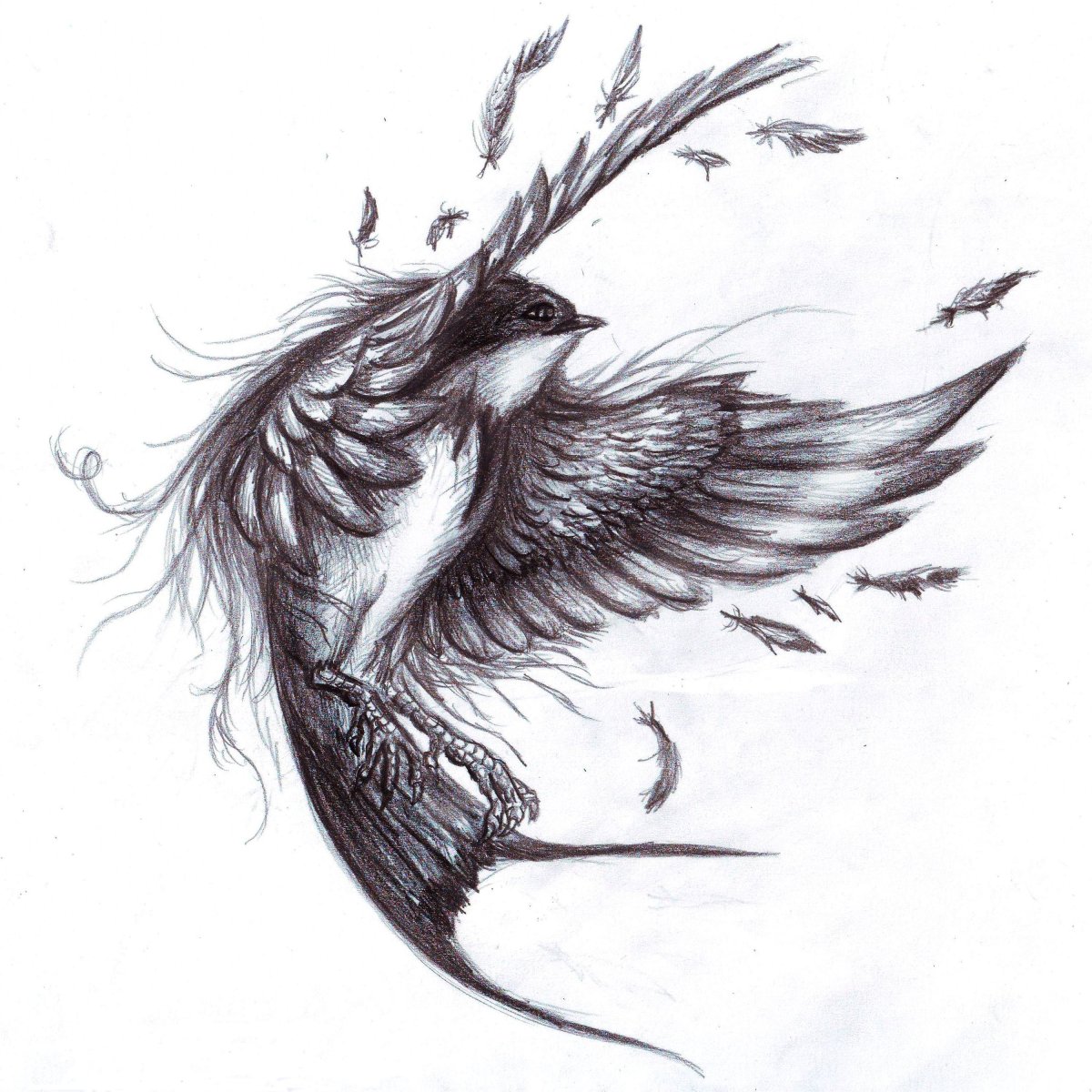 Птица карандашом для срисовки в полете