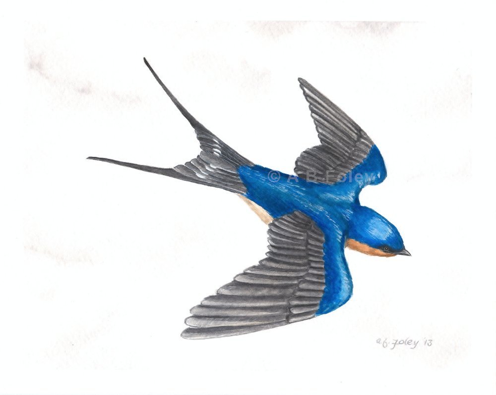 Ласточка акварель