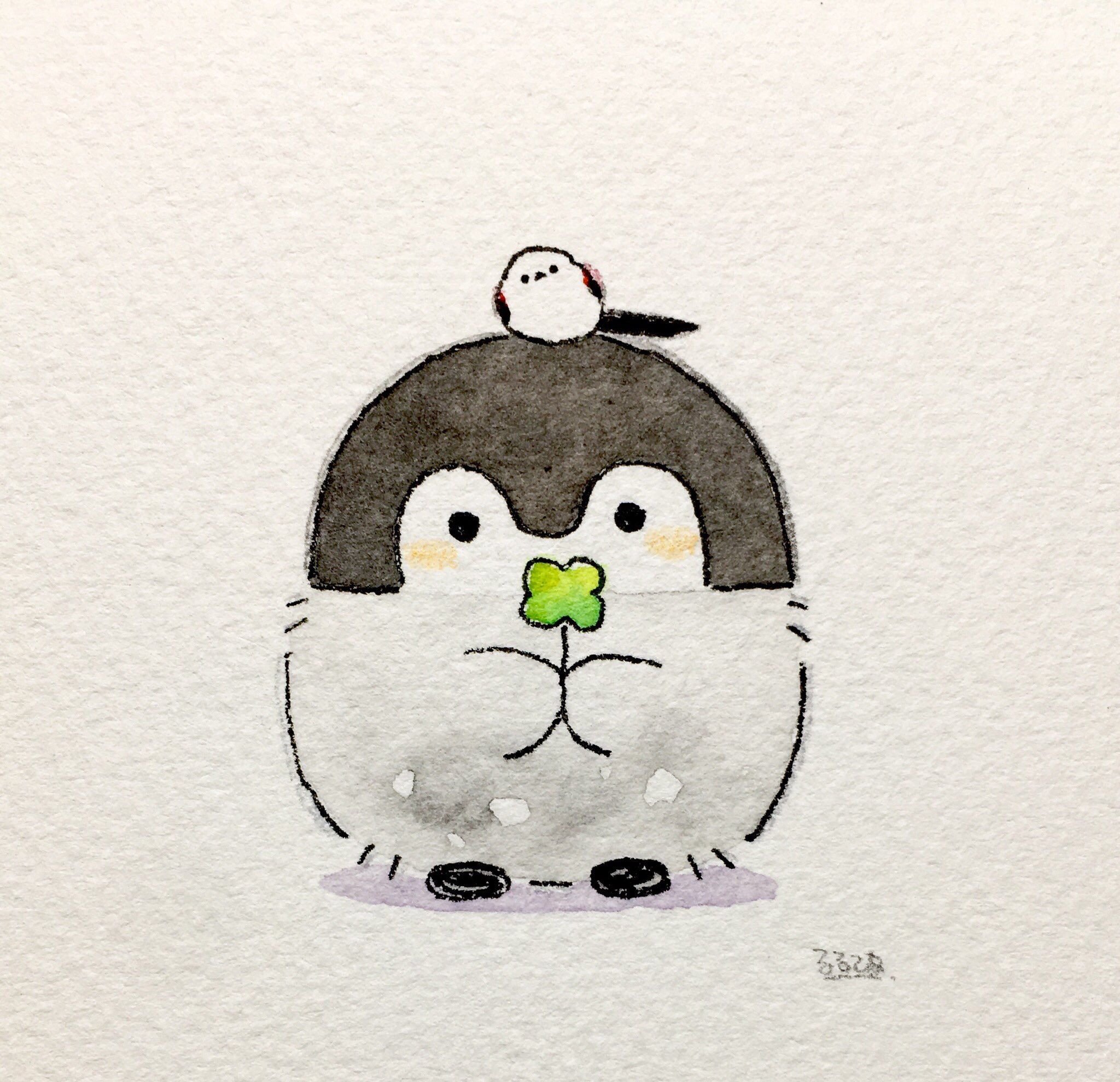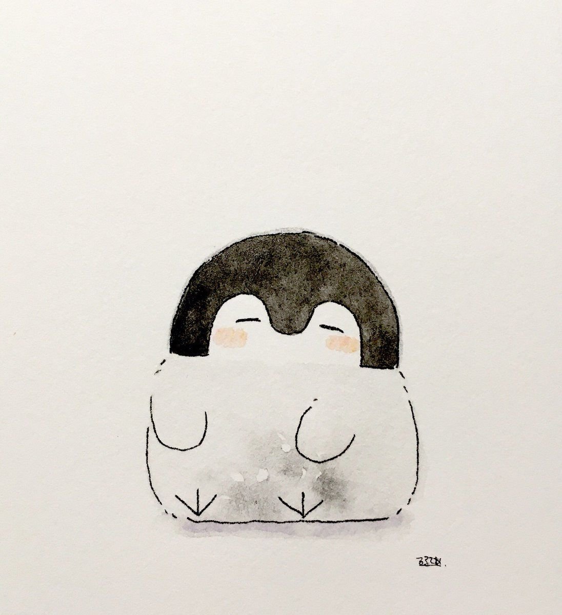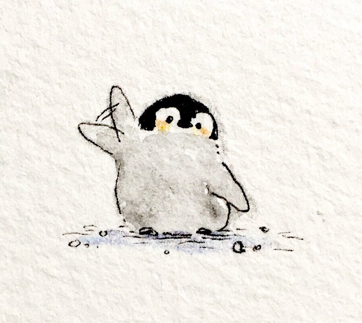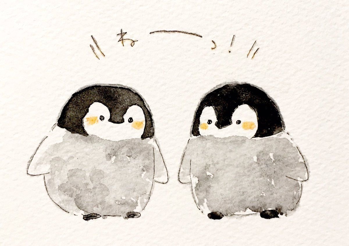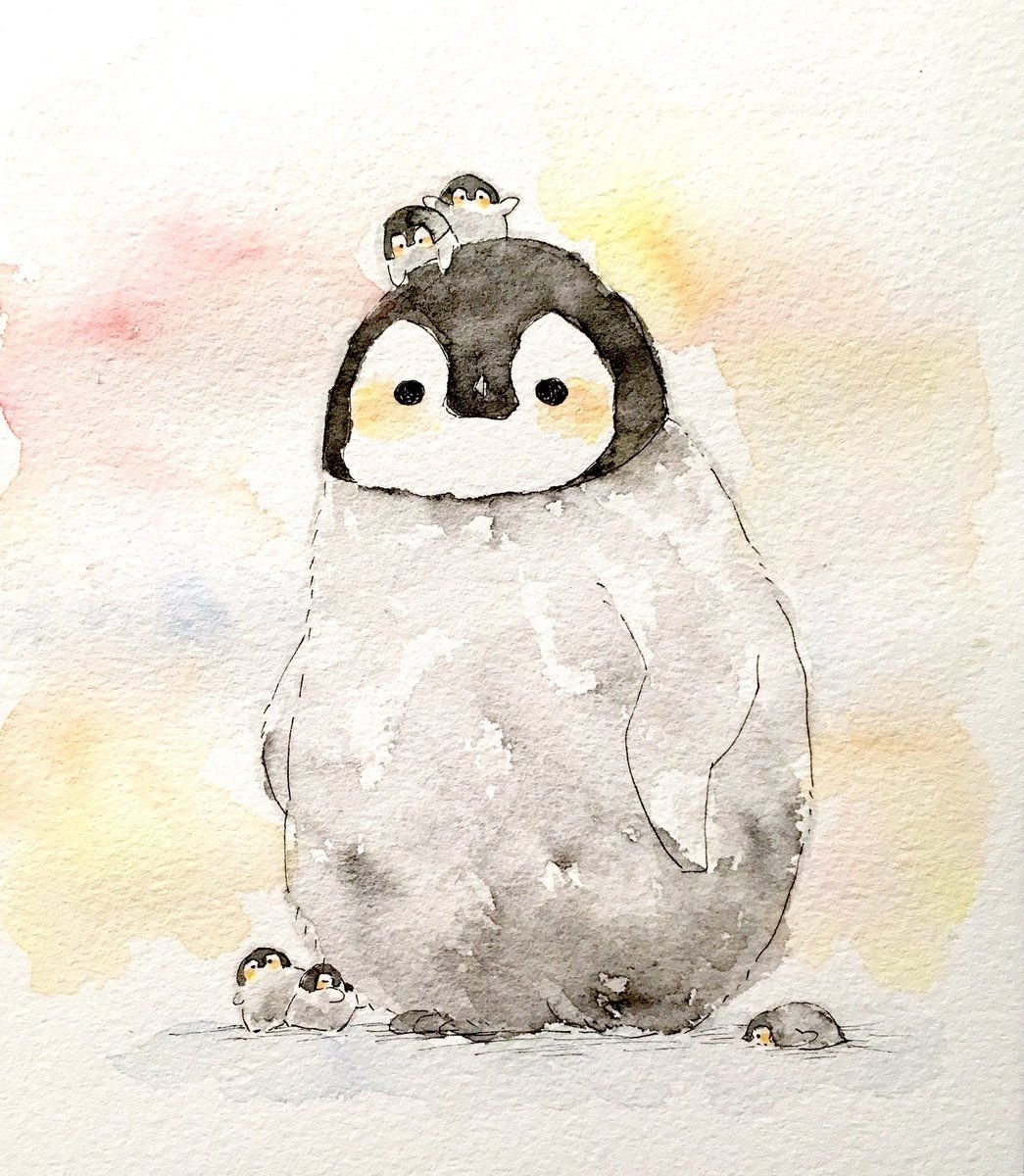 Кавай корейский картинки Пингвинята акварелью