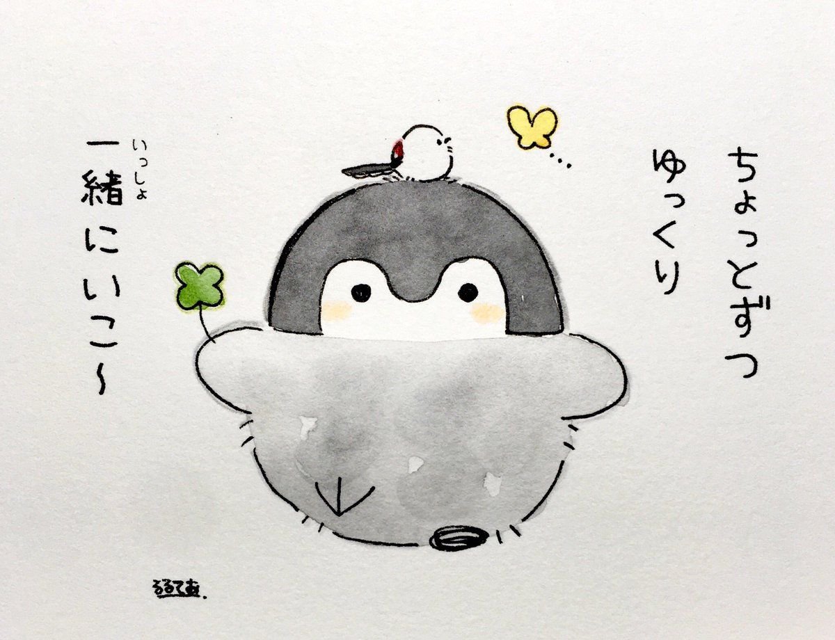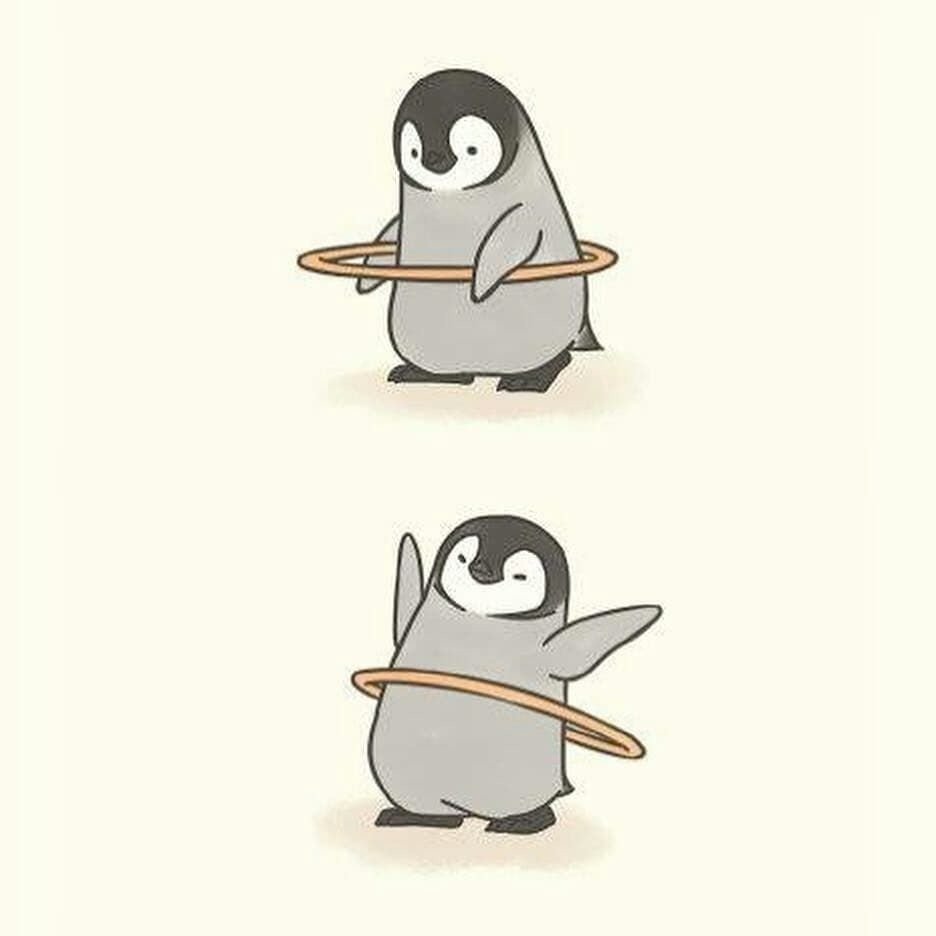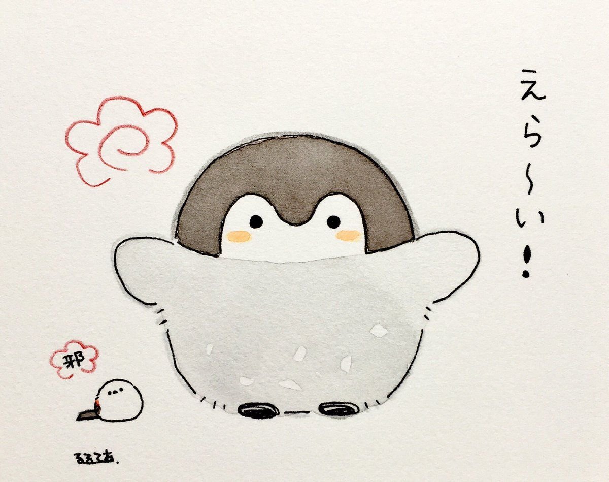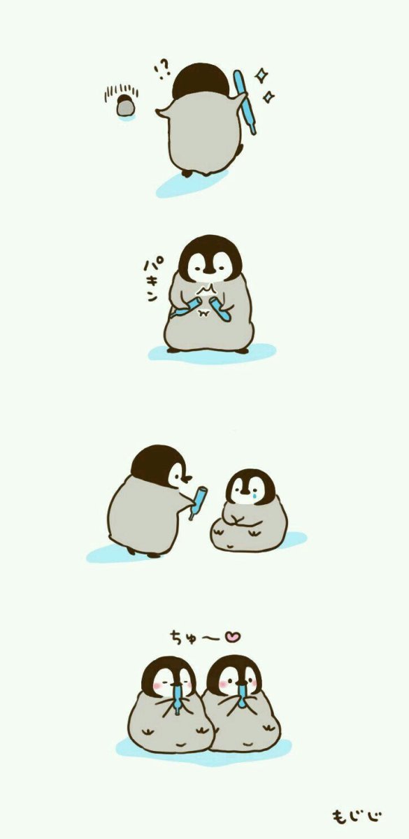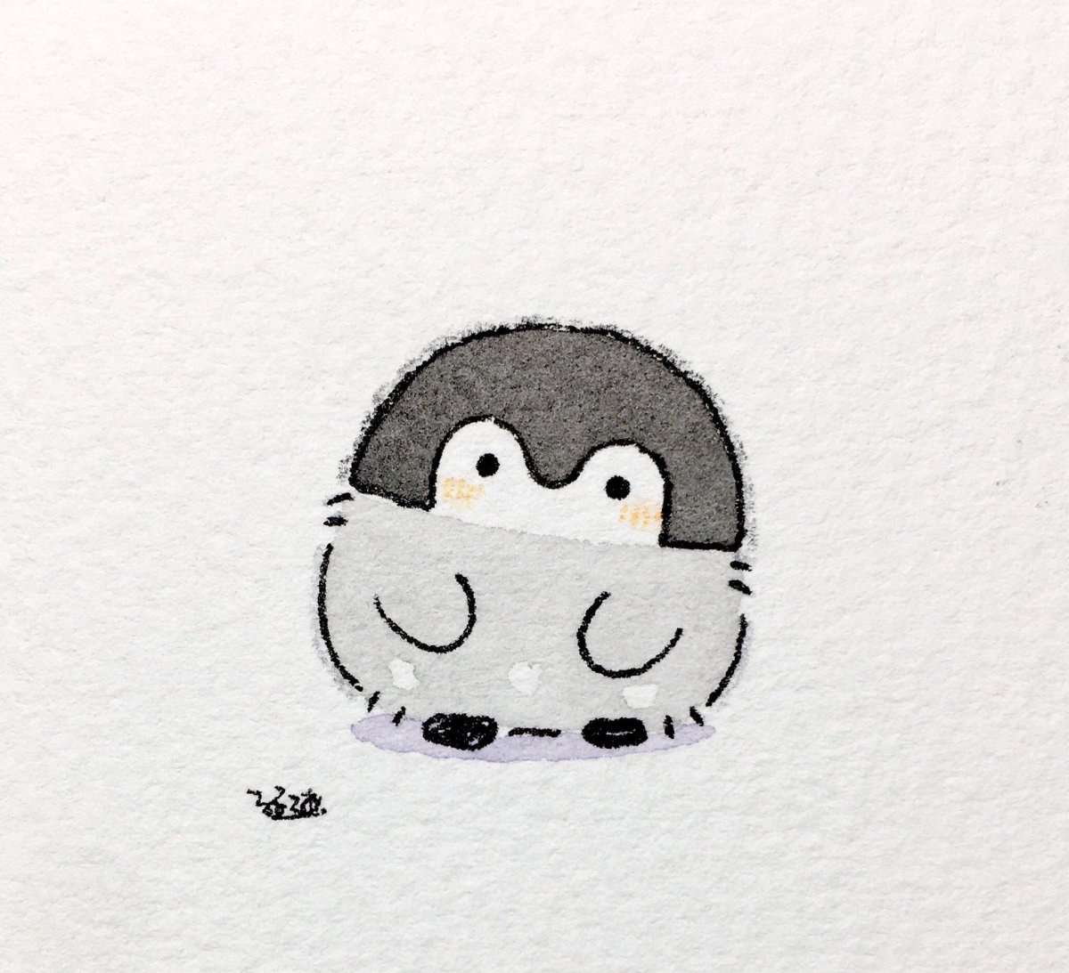 Кавай корейский картинки Пингвинята акварелью