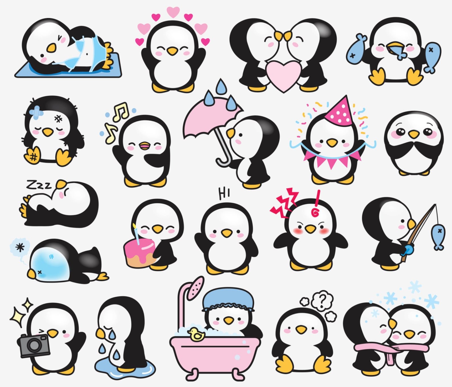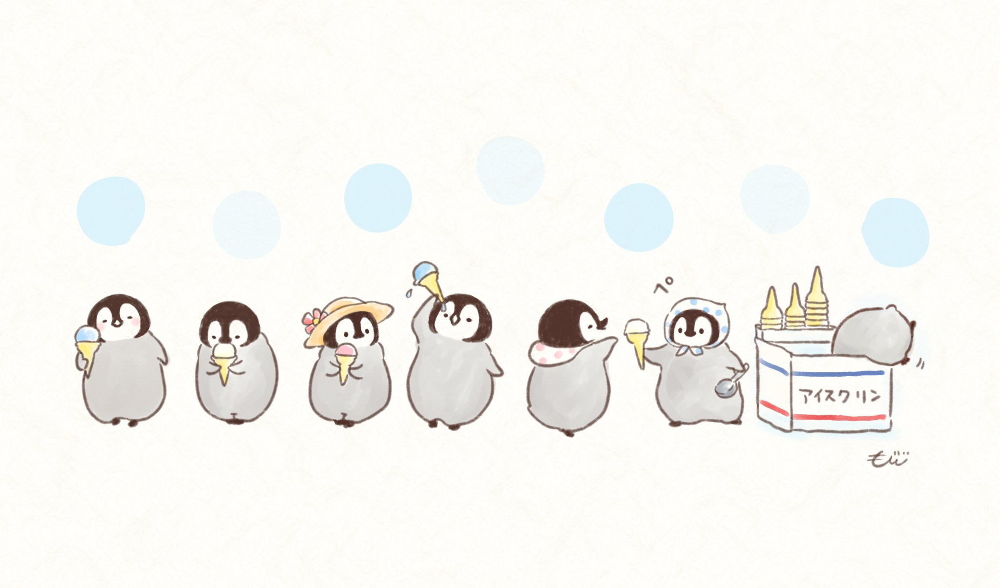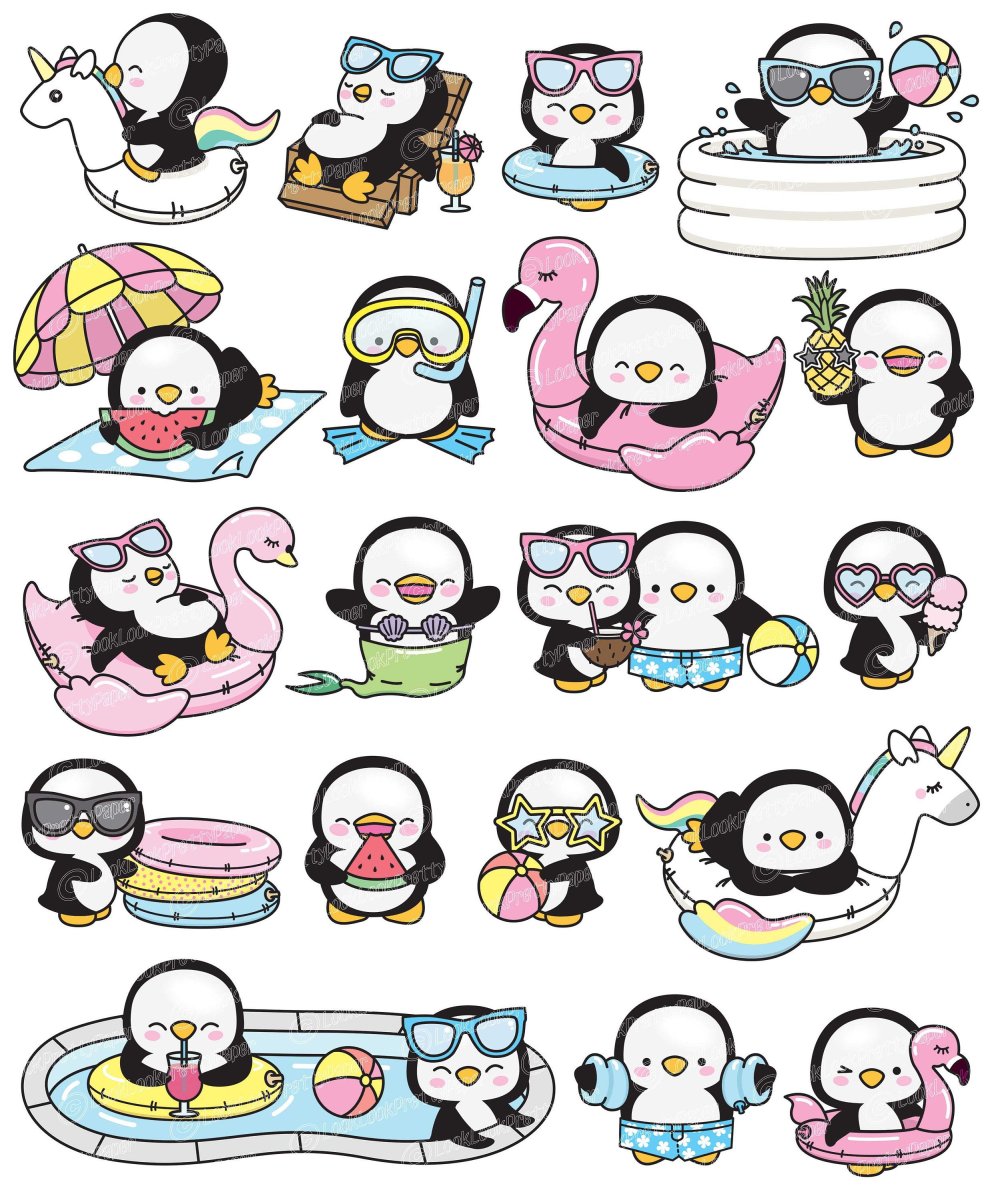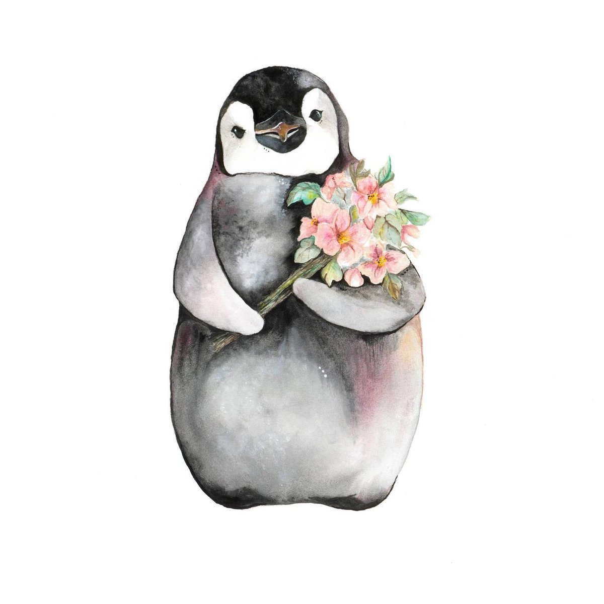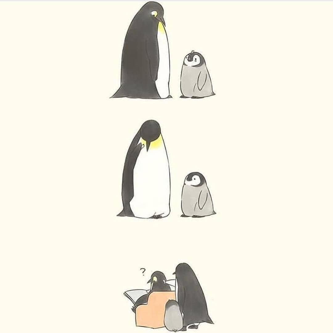 Кавай корейский картинки Пингвинята акварелью