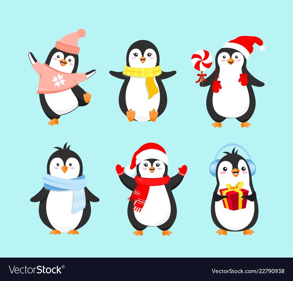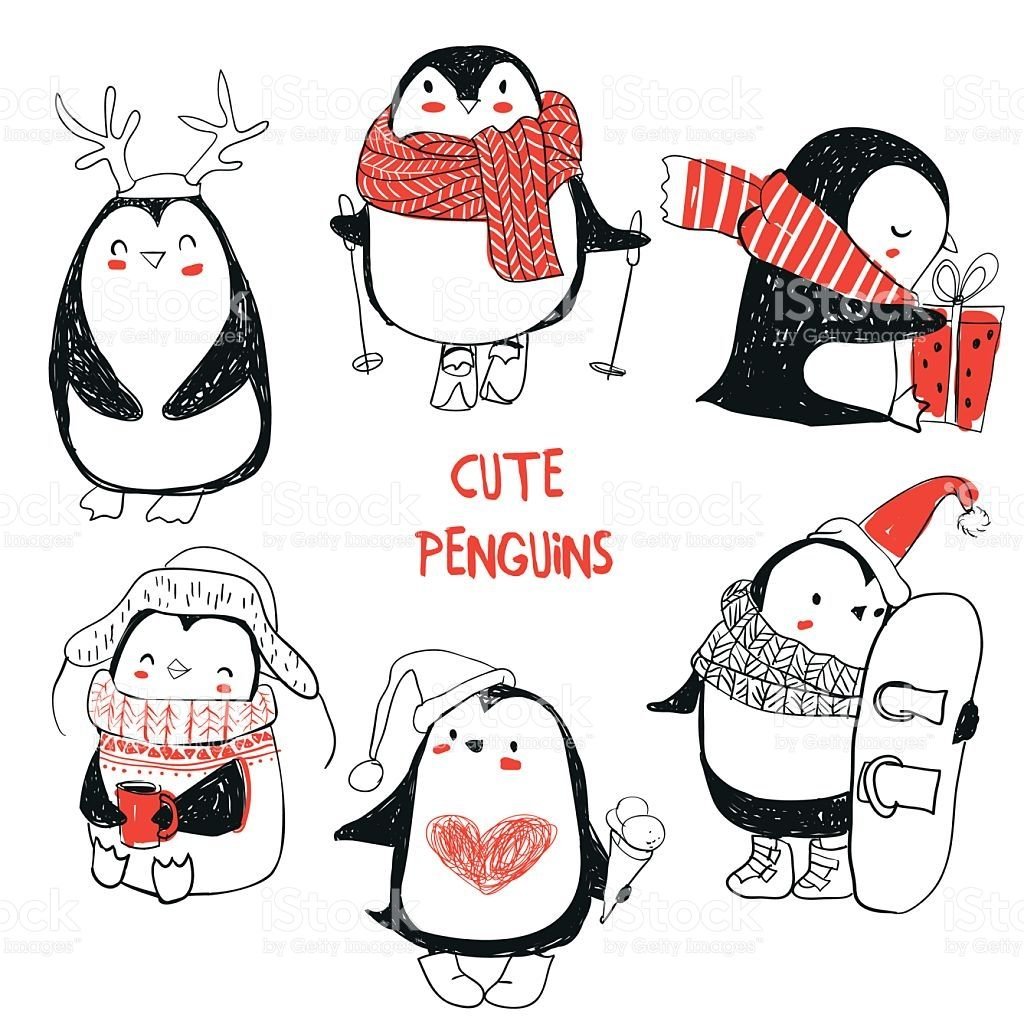 Милые пингвины новогодние рисунки