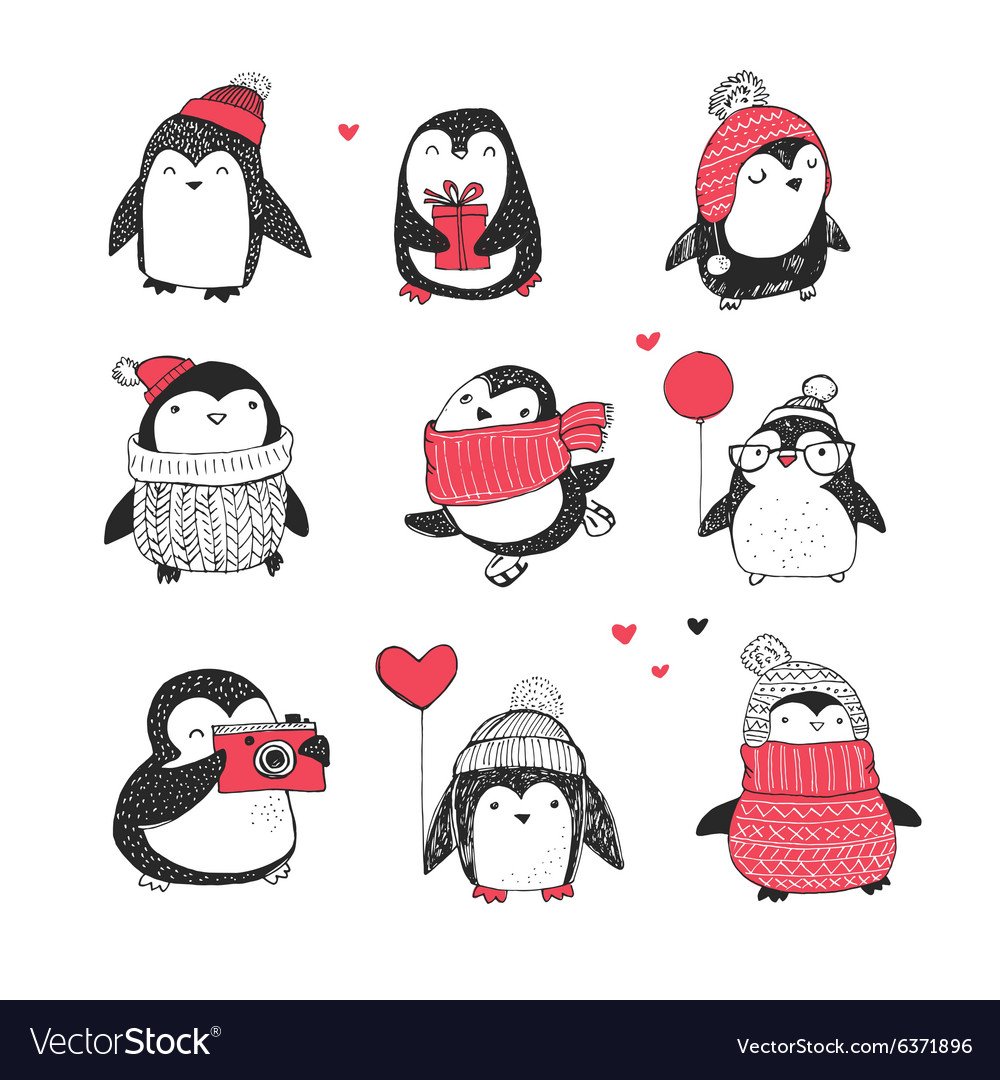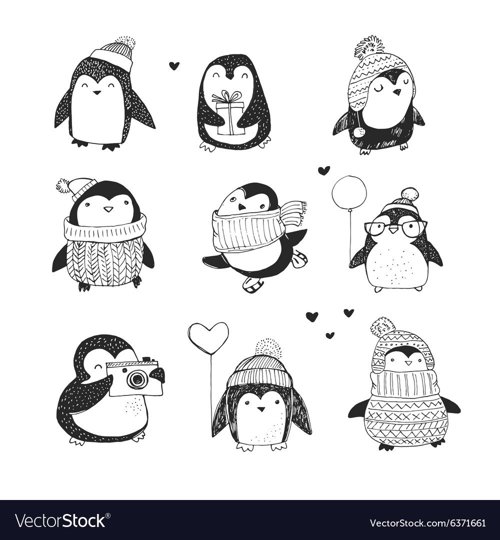 Милые каракули только картинки легкие хомячок и Пингвинчик