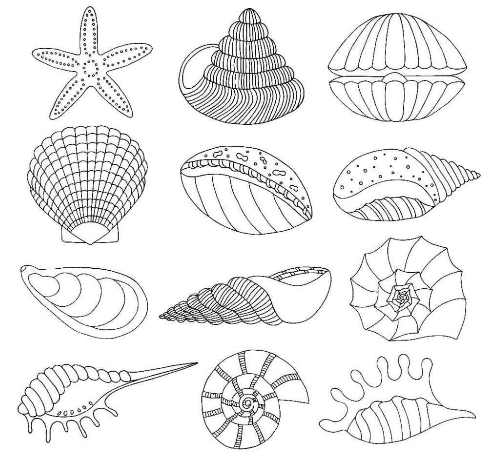 Раскраски ракушки морские