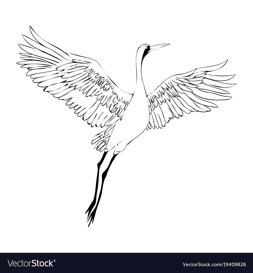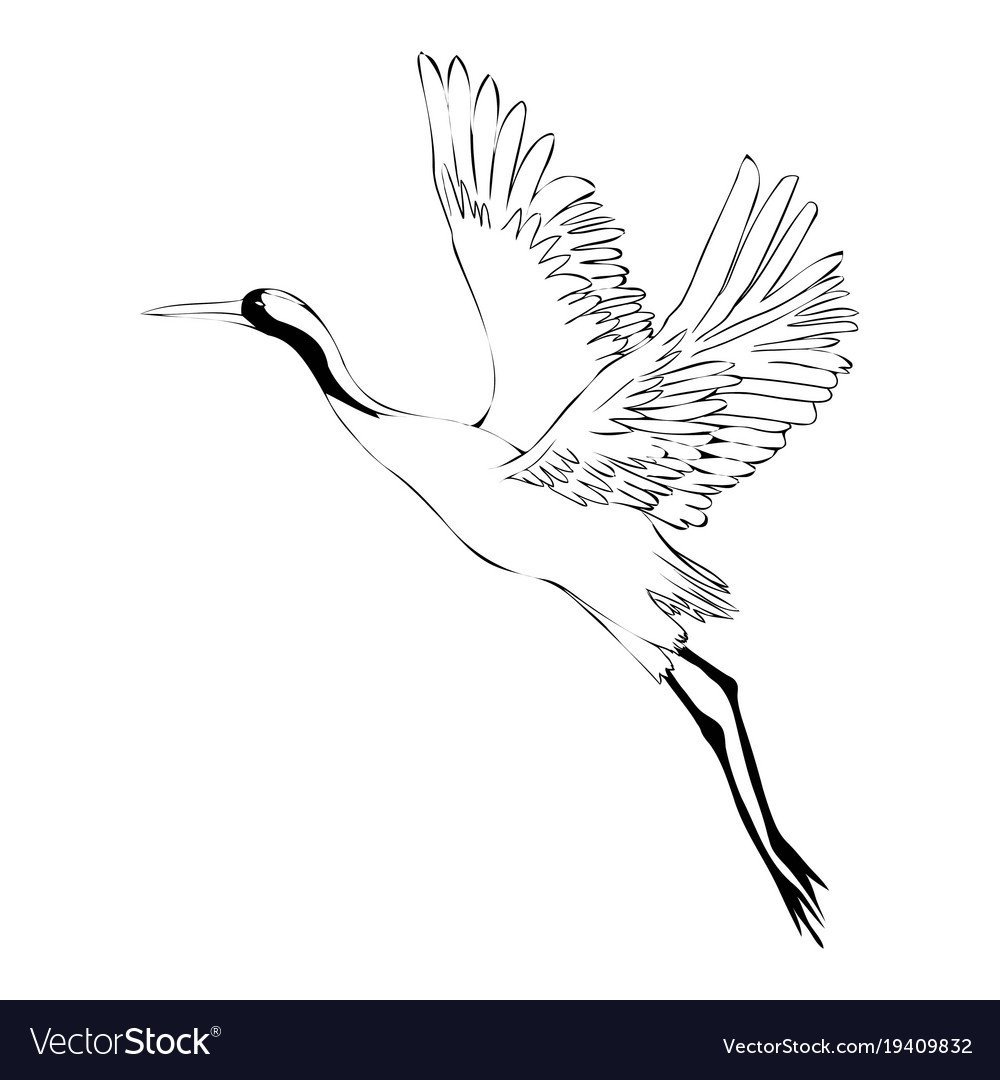 Рисунок журавля в полете для детей