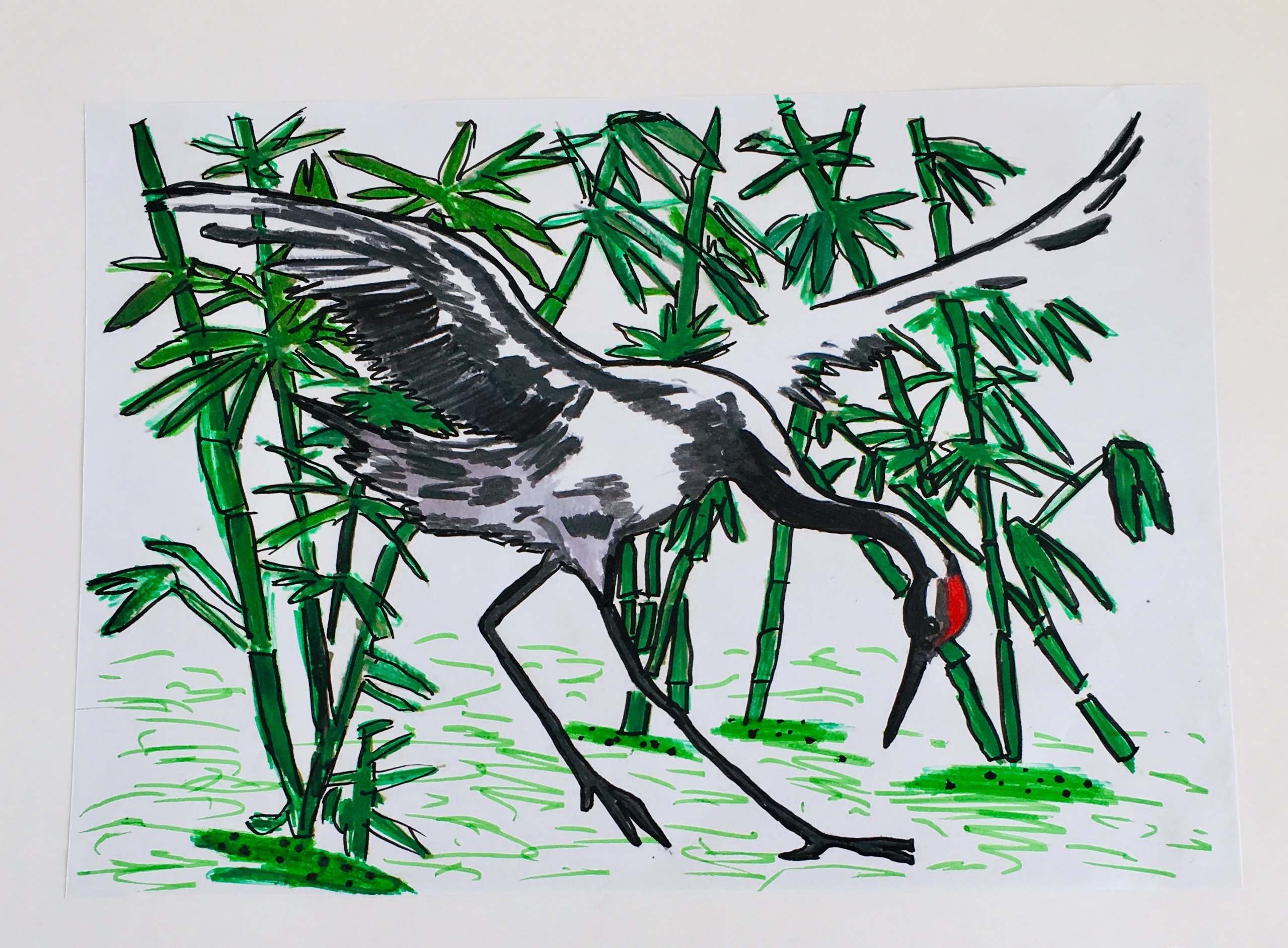 Журавль рисунок детский