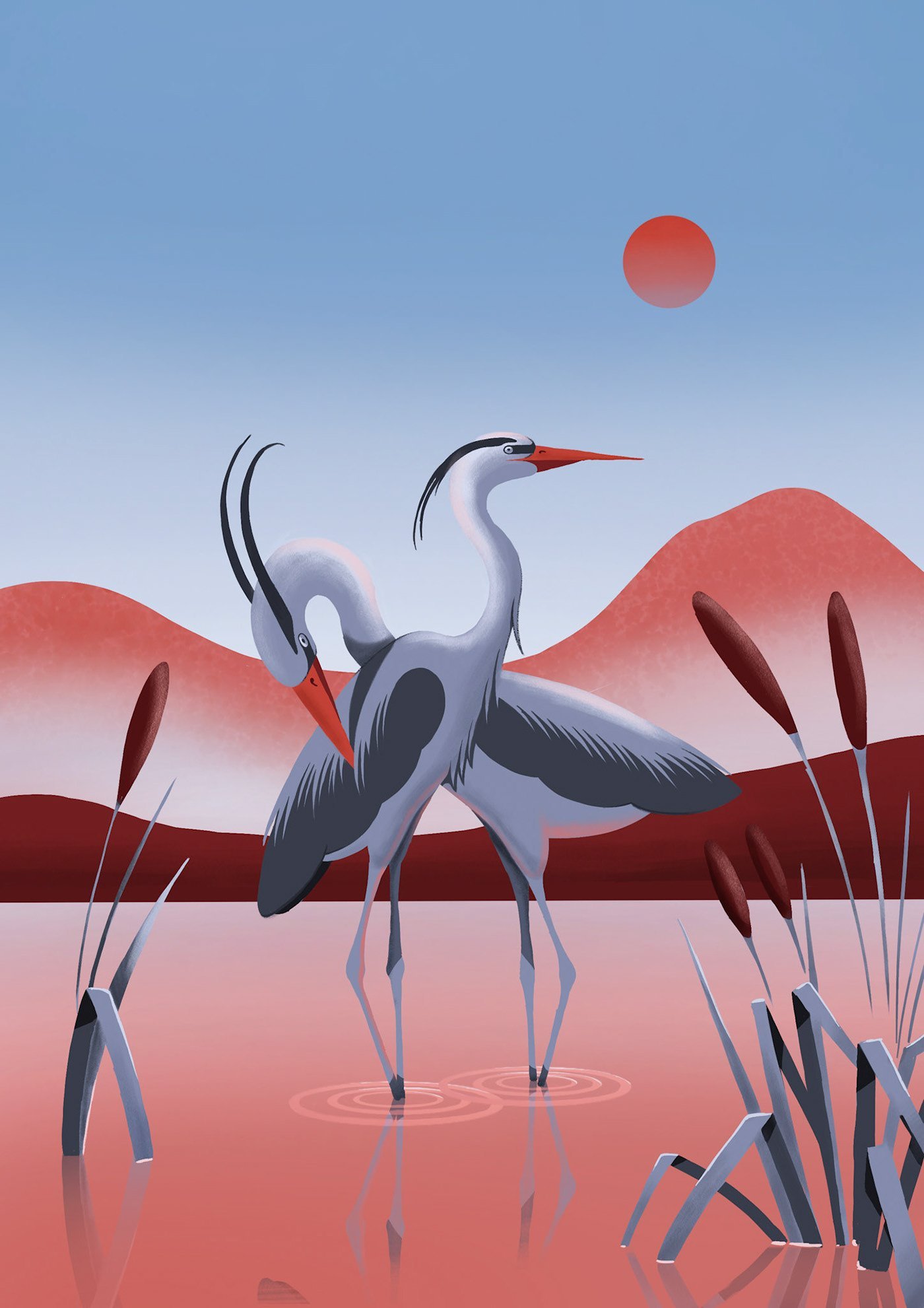 Картина Цапли оранжевые
