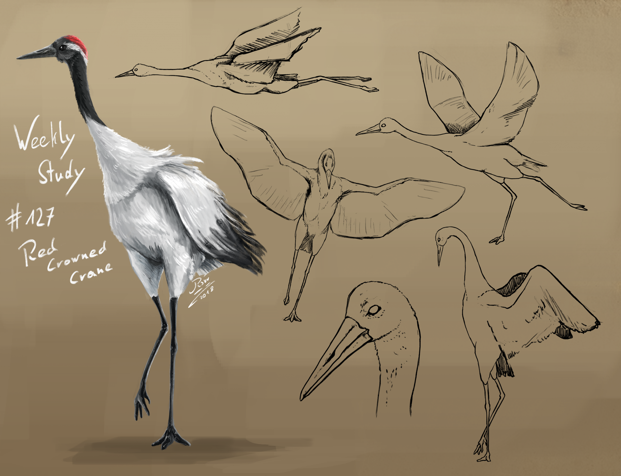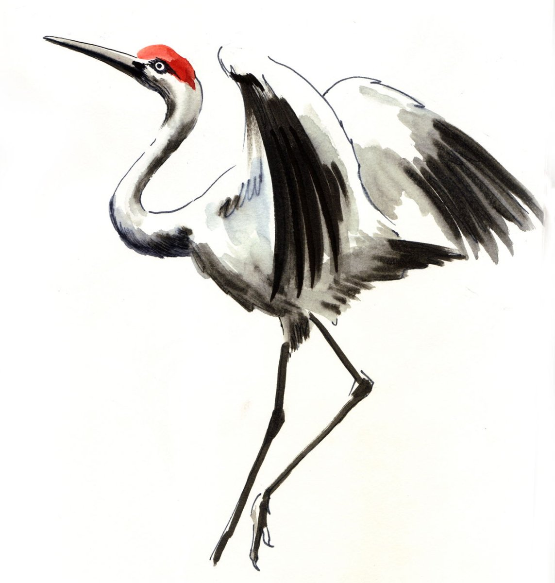 Танцующий японский журавль эскиз