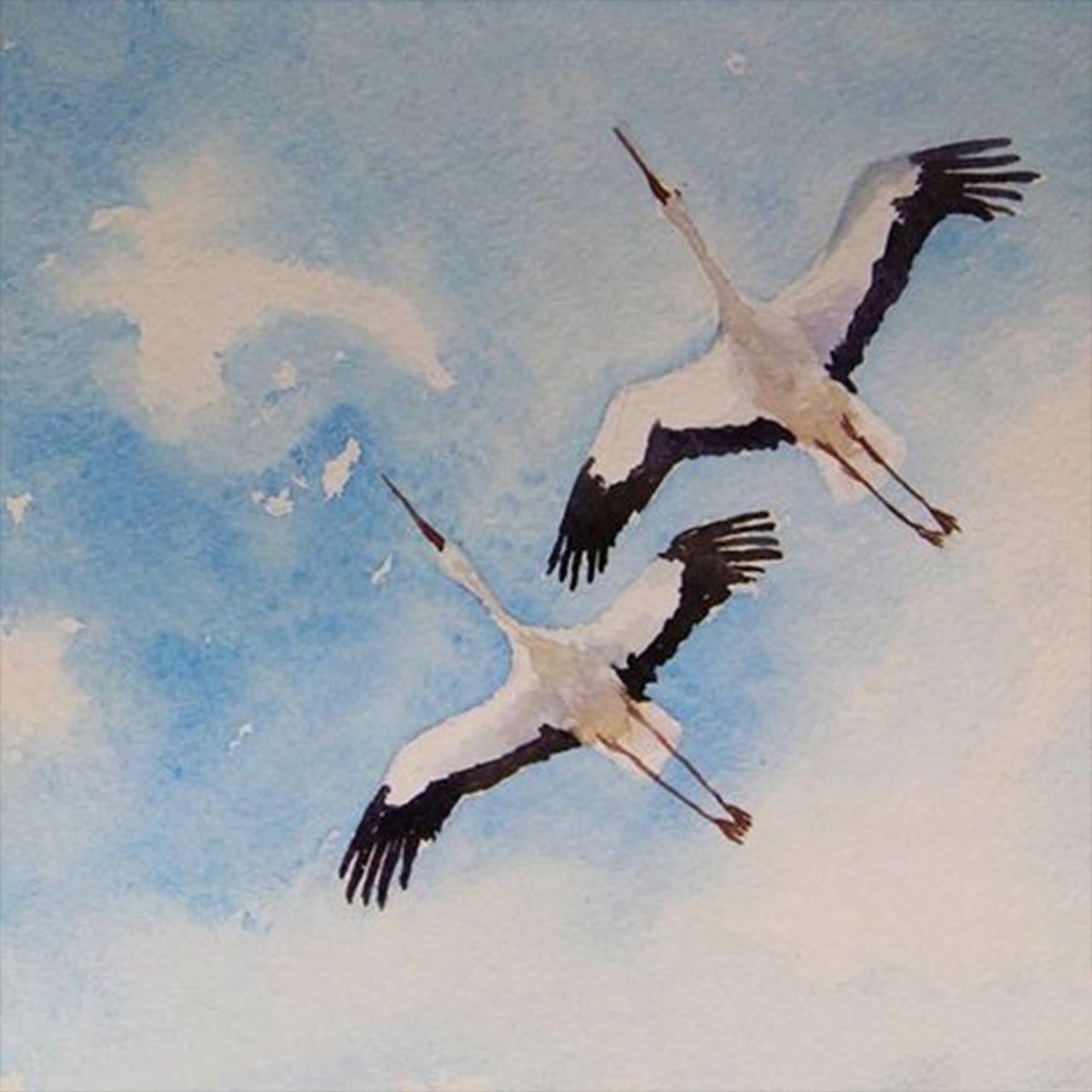 Журавли в небе живопись