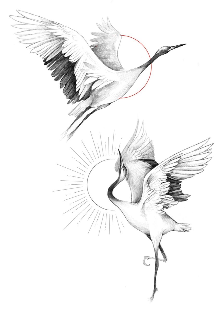 Татуировка журавль эскизы