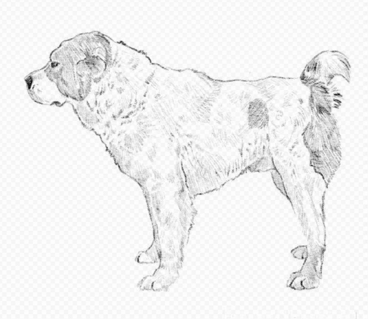 Рисунок собаки алабая карандашом
