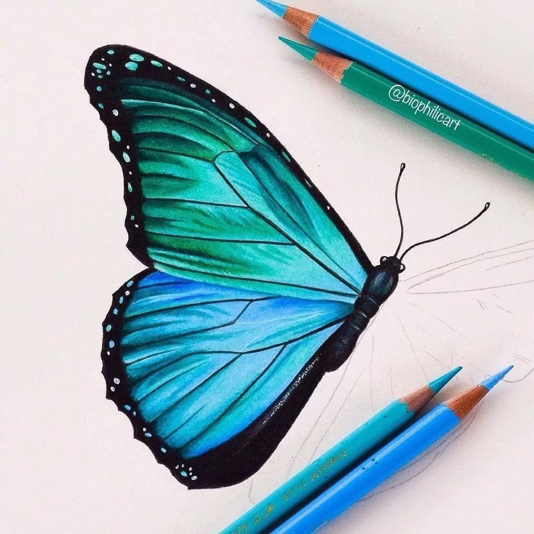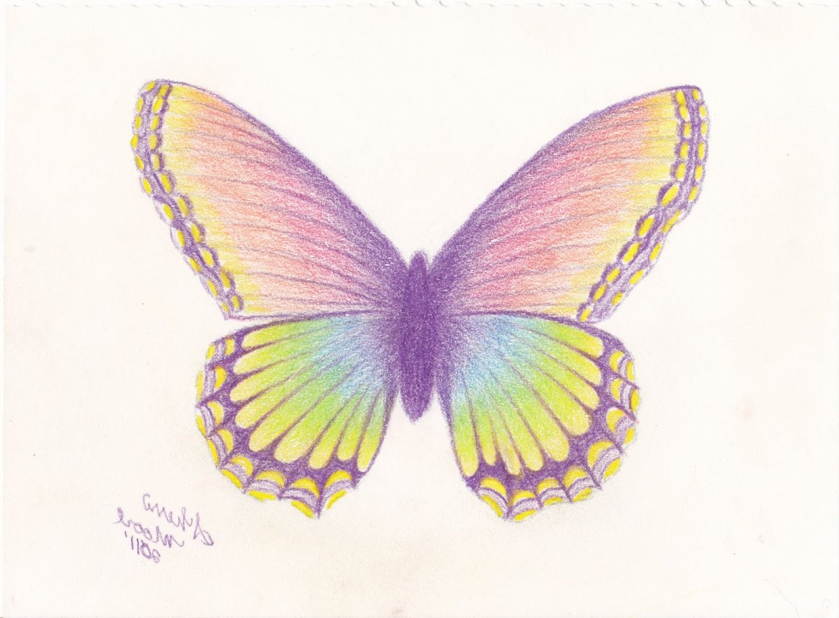 Бабочка рисунок карандашом цветной