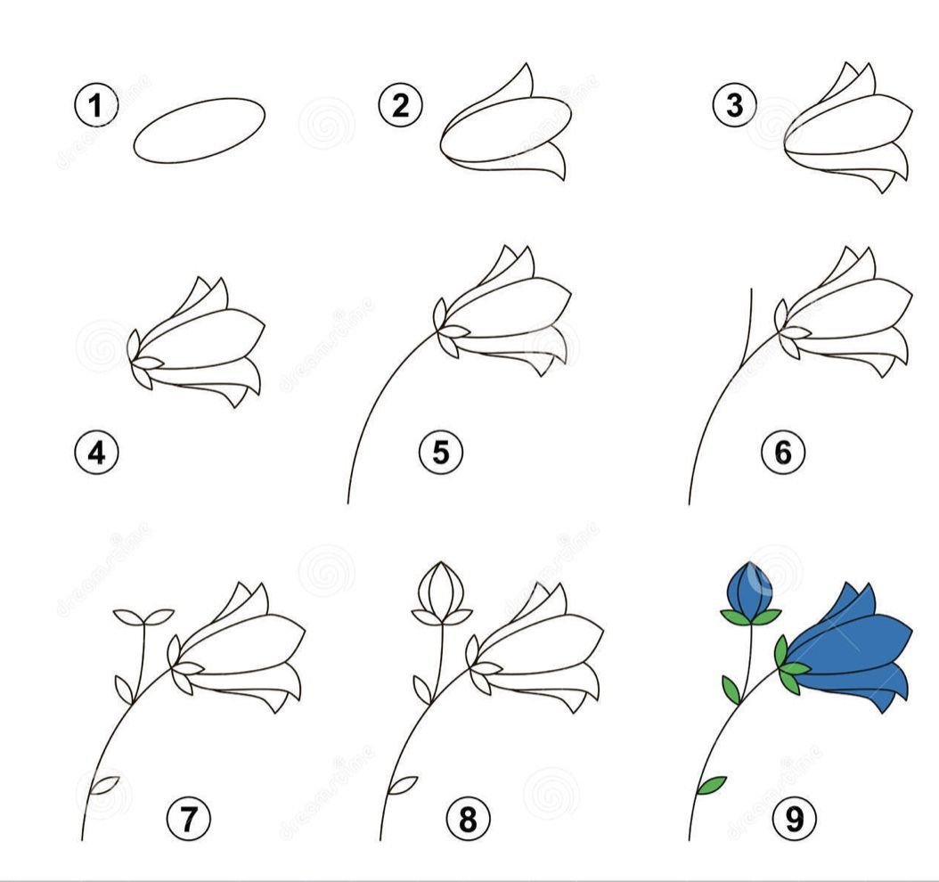 Как нарисовать колокольчик цветок поэтапно