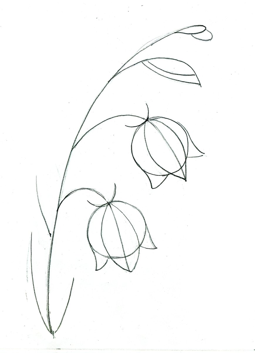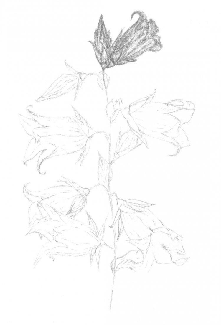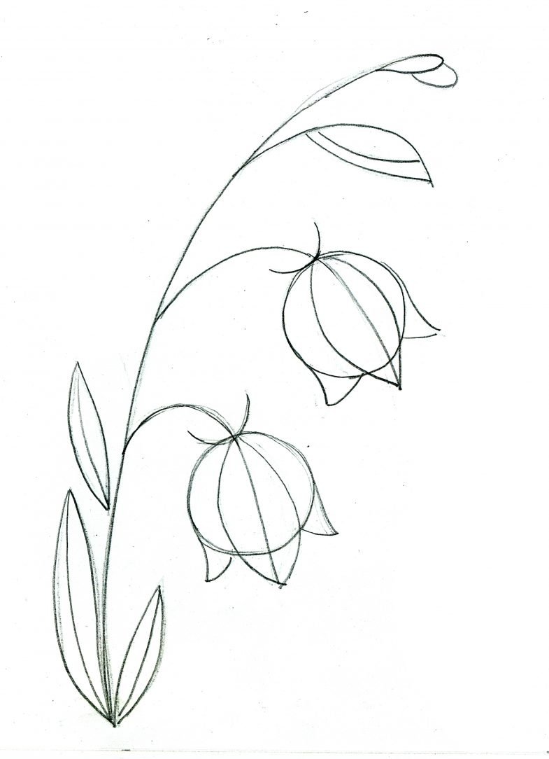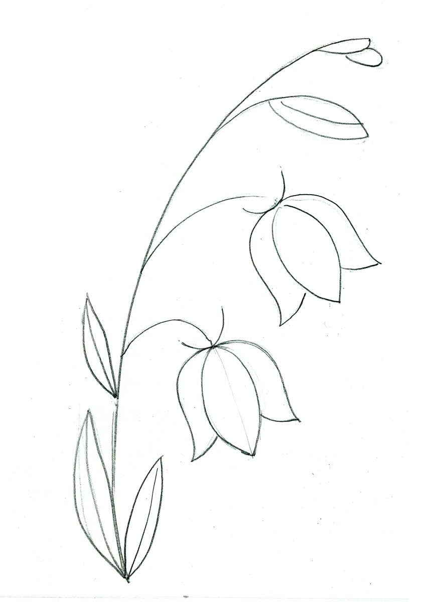 Колокольчик цветок рисунок карандашом