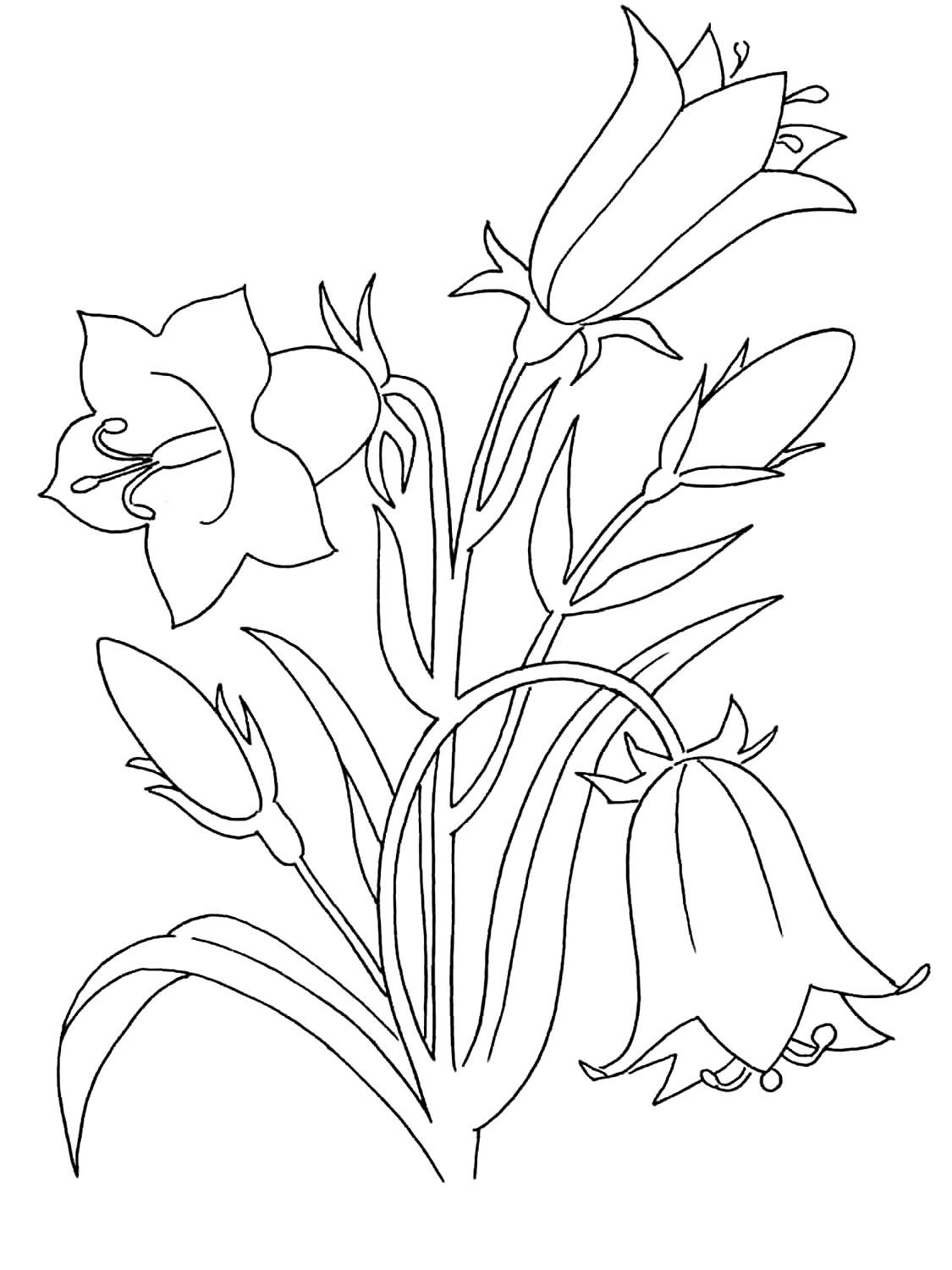 Колокольчик цветок раскраска для детей