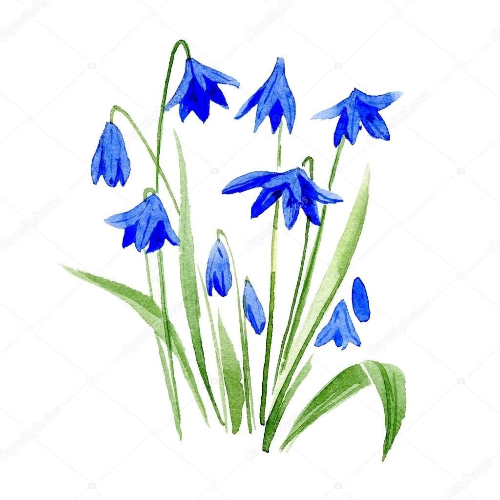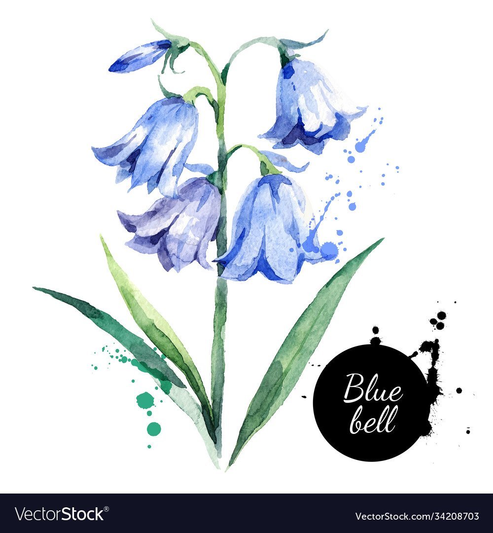 Голубые колокольчики акварель