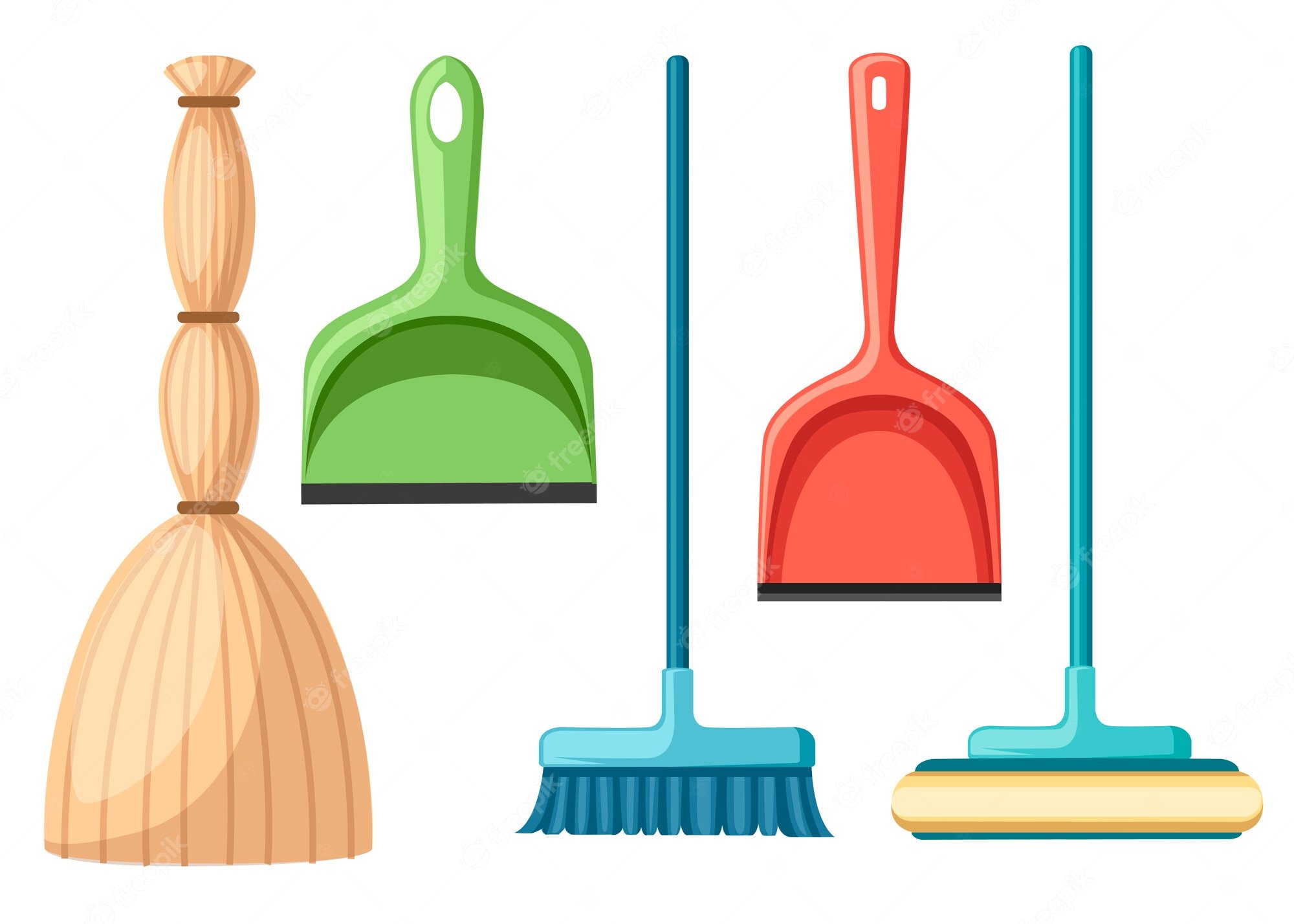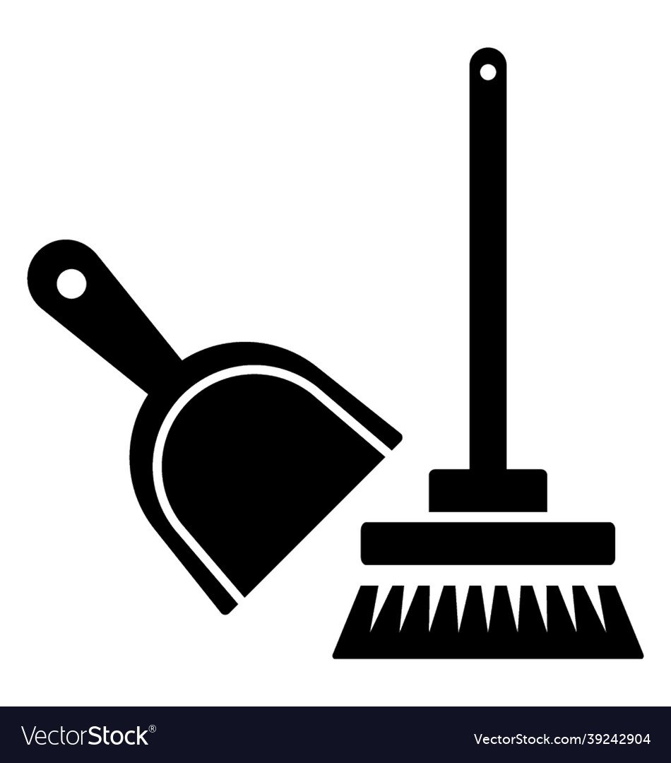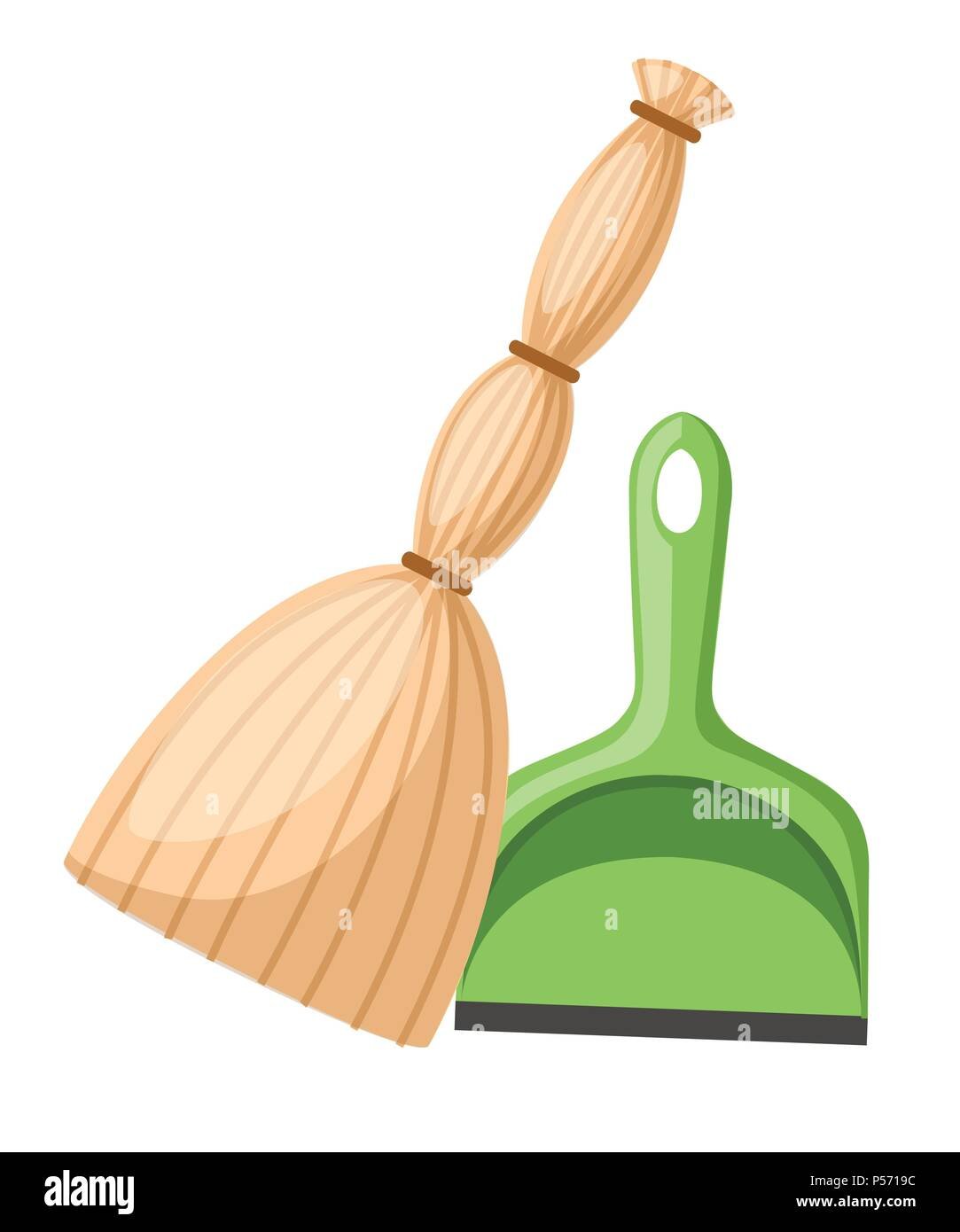 Веник и совок на белом фоне